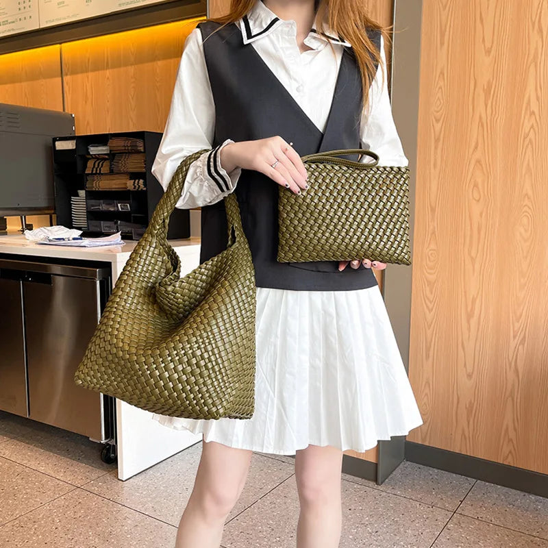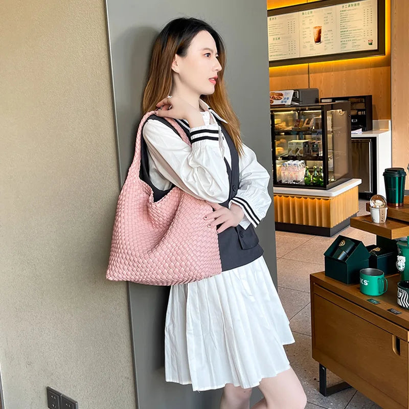 2025 Fashion Soft Hobo Weave Shoulder Handbag With Insert Organizer Woven Vegan Leather Top-handle Tote All-Match Underarm Bag