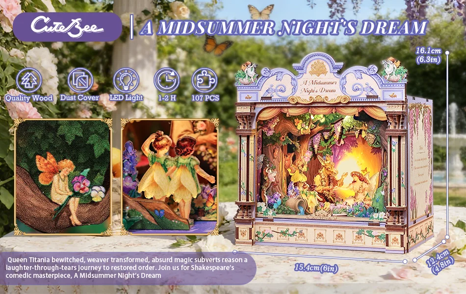 CUTEBEE 3D Miniature House DIY Book Nook Kit Wooden Puzzle for Adults Home Desk Decoration, Unique Handmade Stress Relief Gift