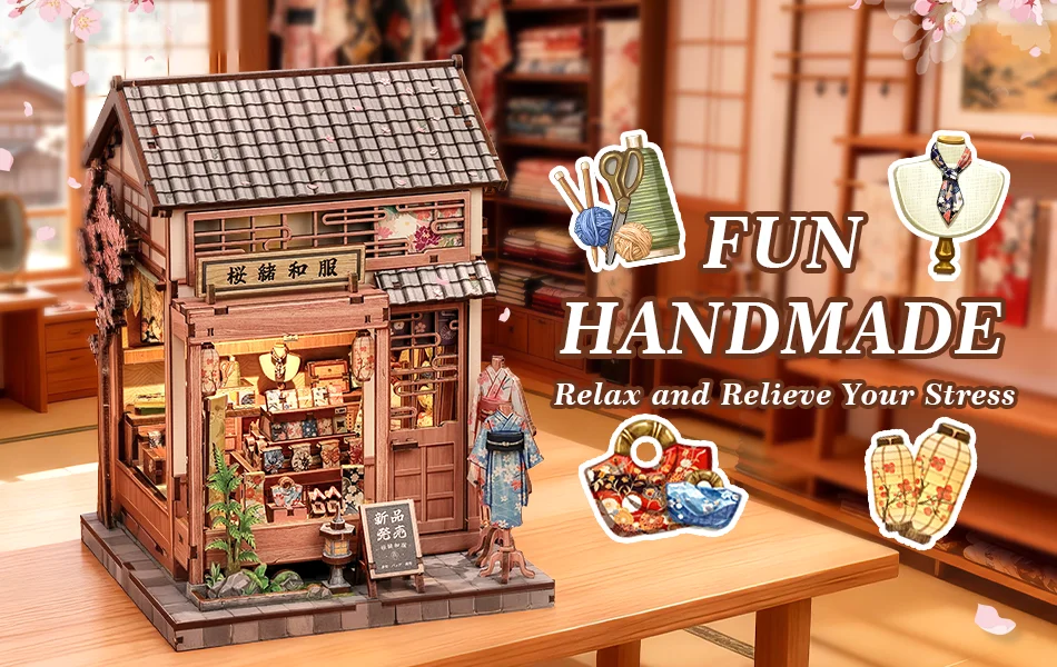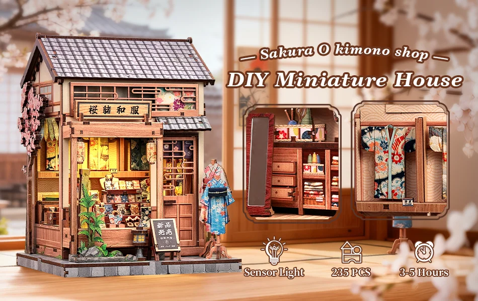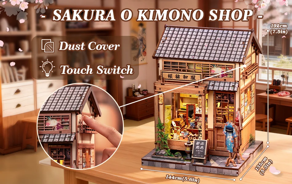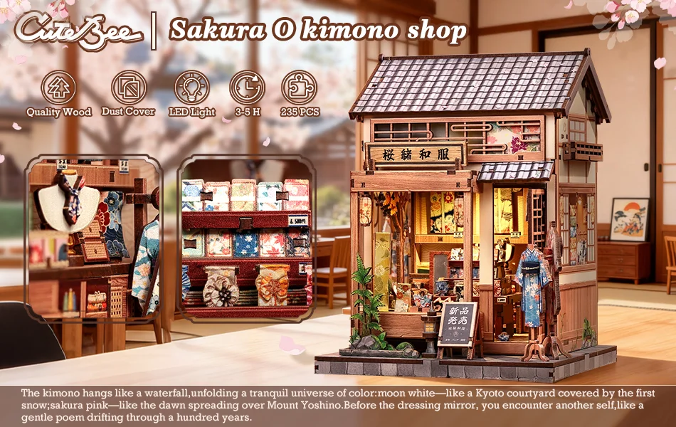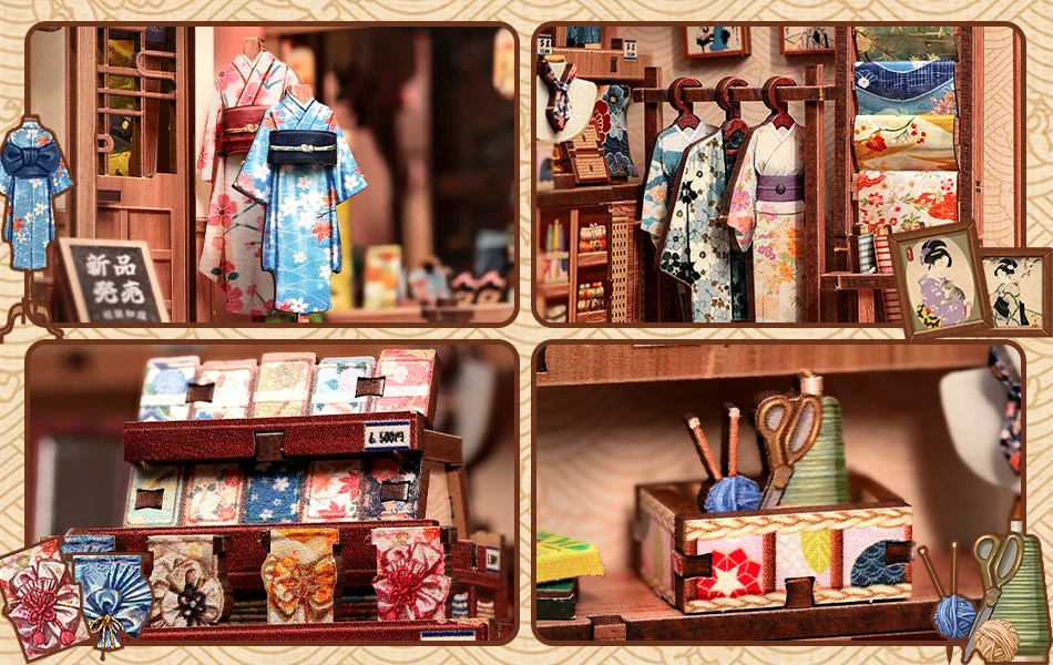 CUTEBEE Book Nook Kit DIY Doll House Wooden Puzzle Bookshelf Insert Miniature Model Christmas Gift for Sakura O kimono Shop