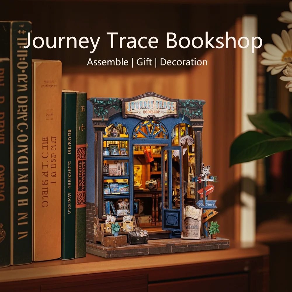 Cutebee DIY Miniature House Book Nook Bookshelf Insert Dollhouse Model Street Shop Series Wooden Bookshelf Toys Birthday Gifts