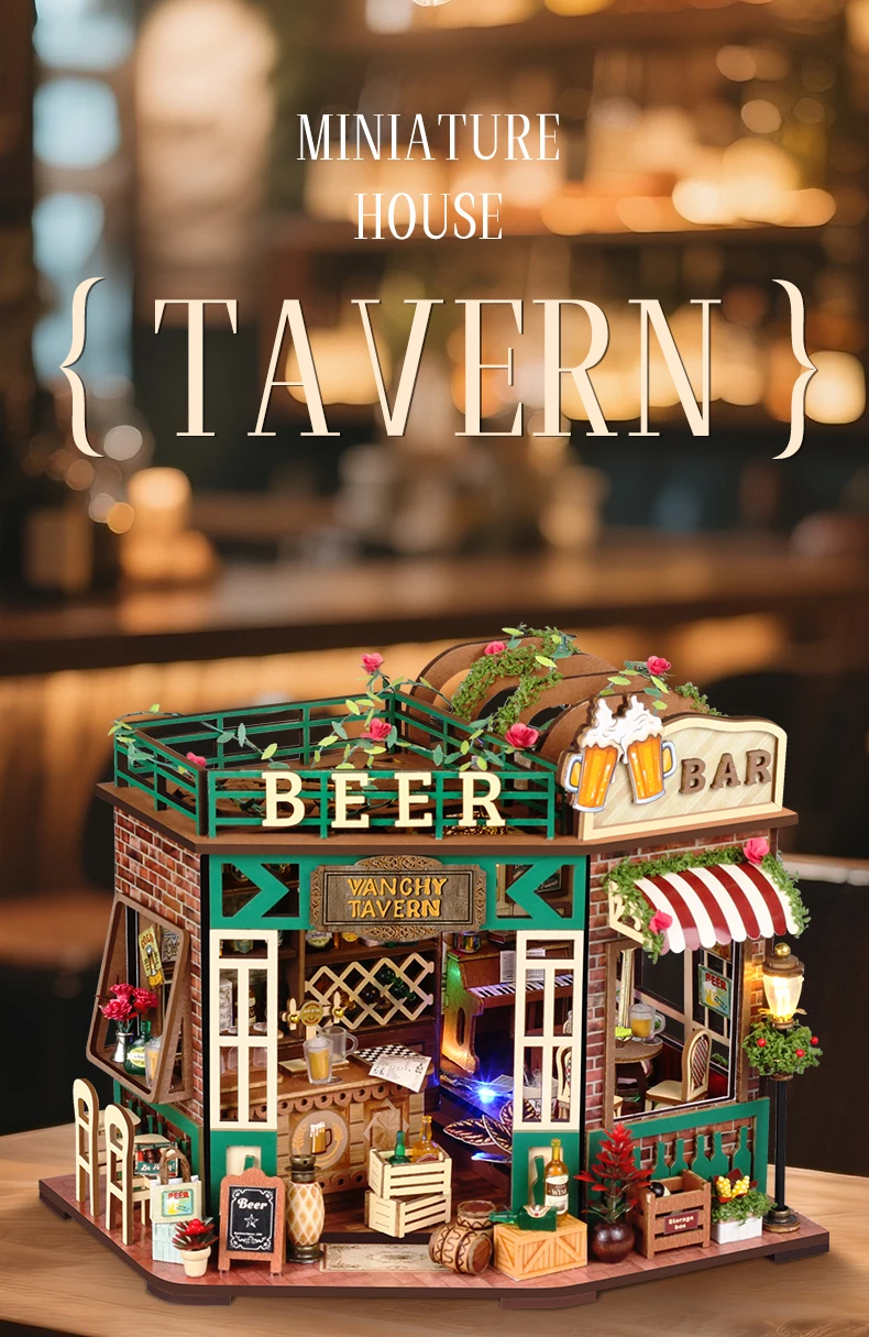 DIY Beer Bar Craft Kit – Handmade Micro House Model Christmas Gift for Adults, Creative Dollhouse Decor (Assembly Required)