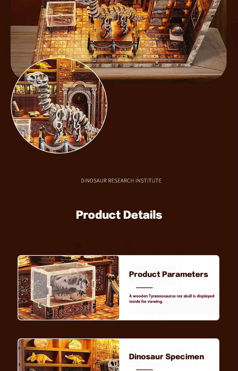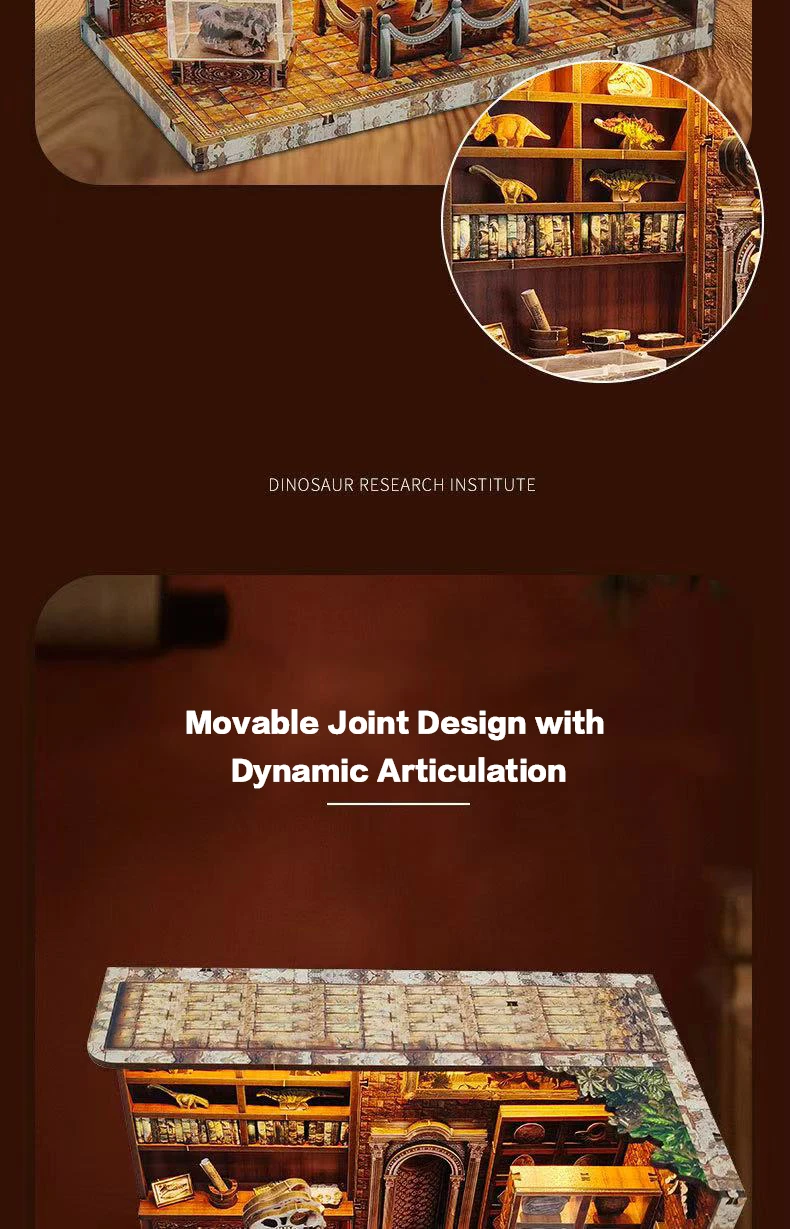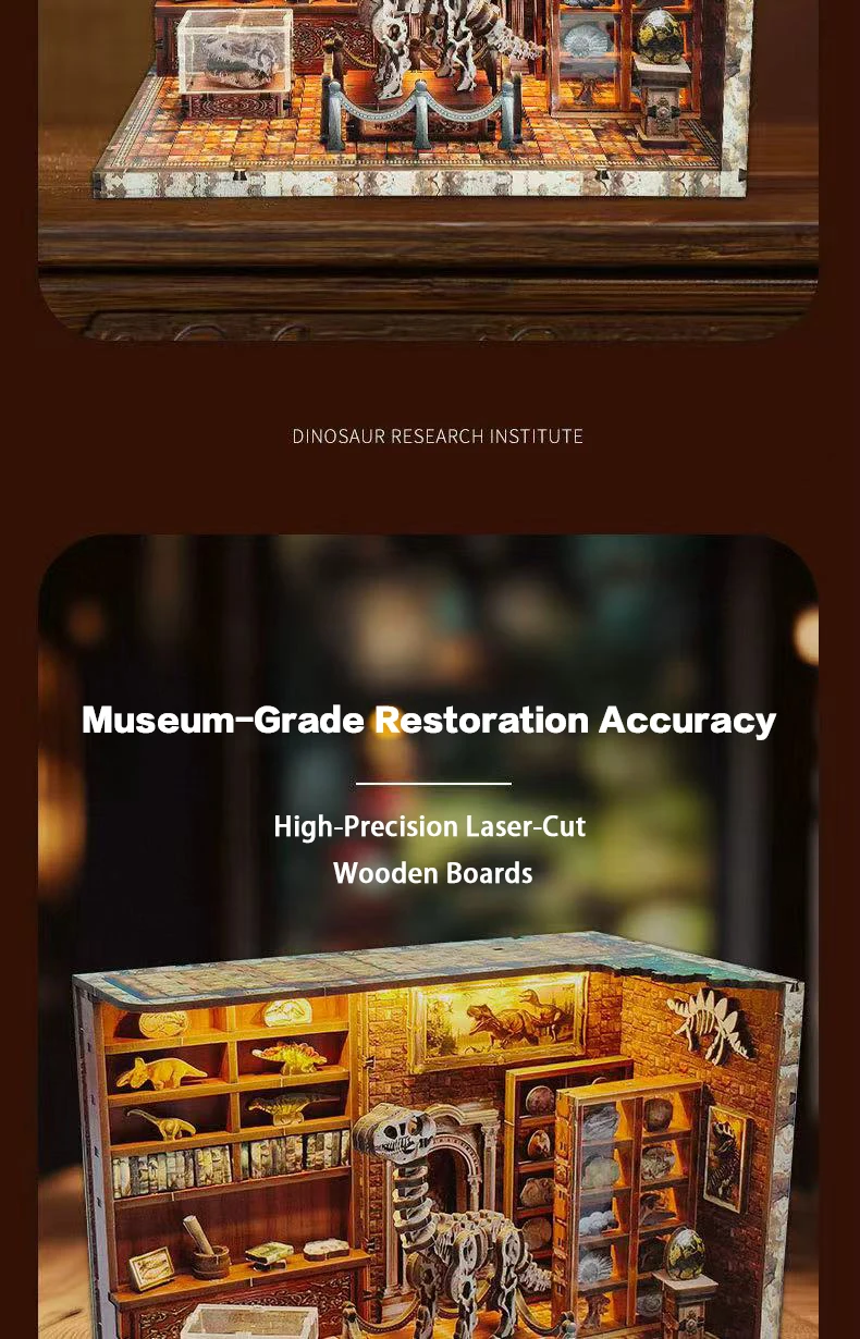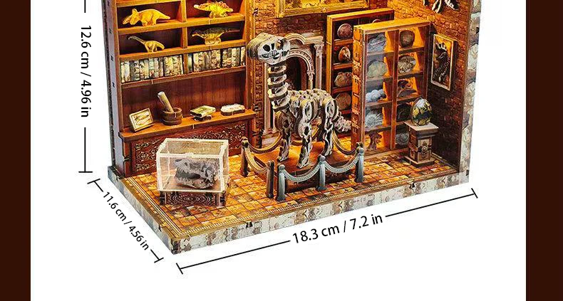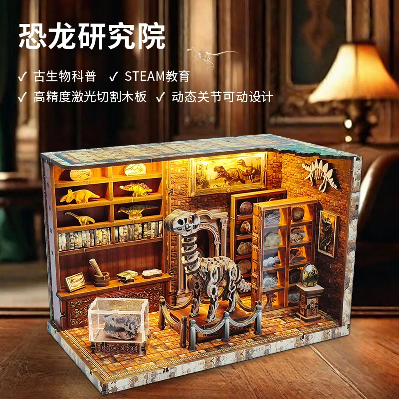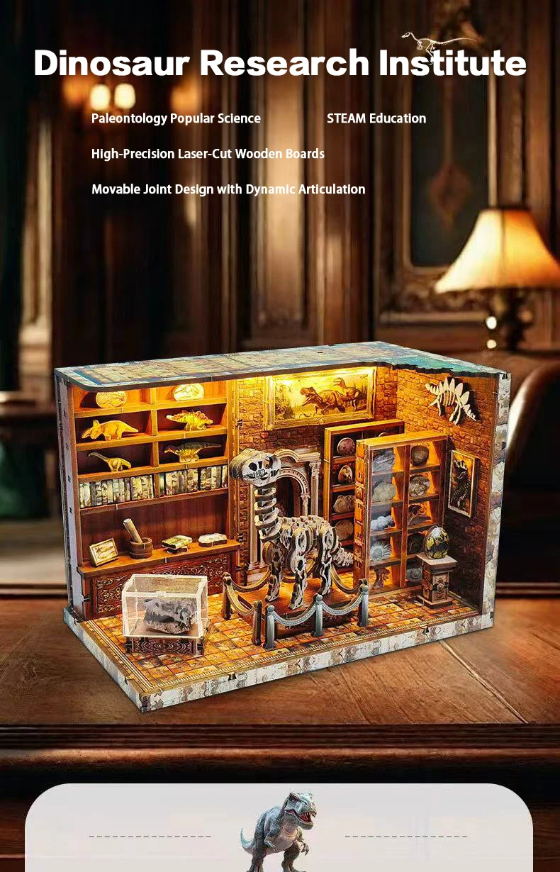 DIY Dinosaur Research Institute - Hand-Assembled Wooden Bookend Model, Miniature House Creative Gift for Home Decor Collection