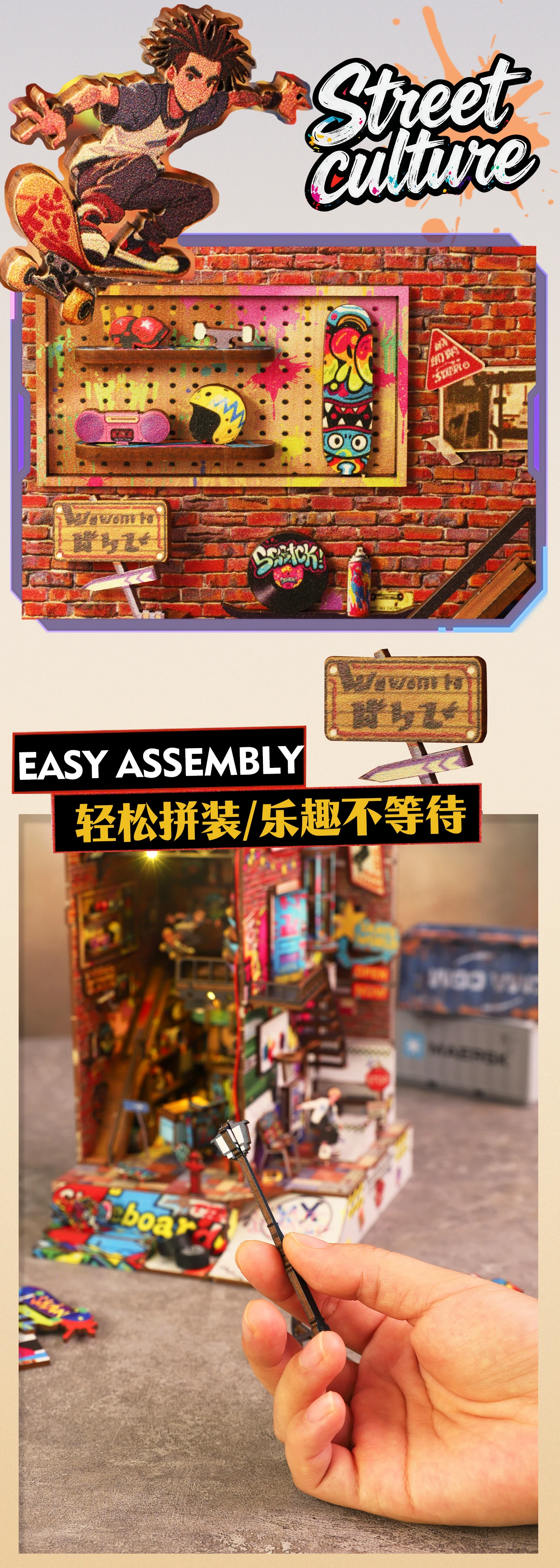 Dynamic Skatepark Diorama Kit - Action-Packed 3D Wooden Bookend, Unique DIY Model for Home Decor and Collection