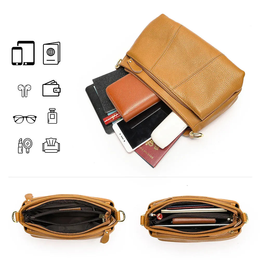 Genuine Leather Women's Bag Luxury High Quality Women Crossbody Bag Trendy Designer Cowhide Female Shoulder Bags 7651