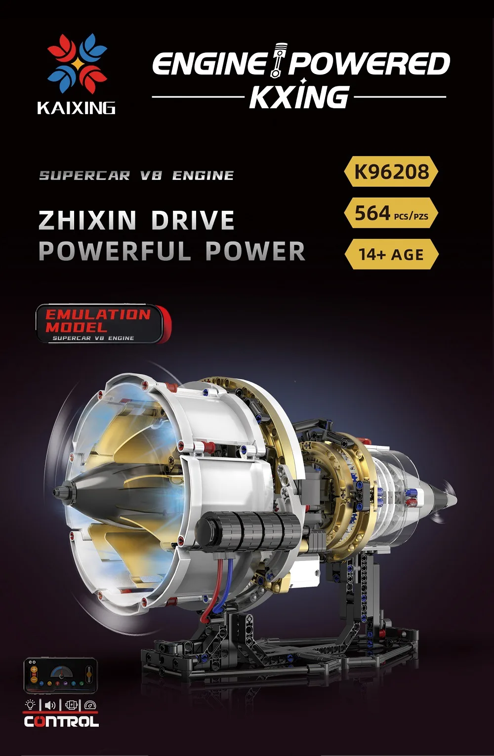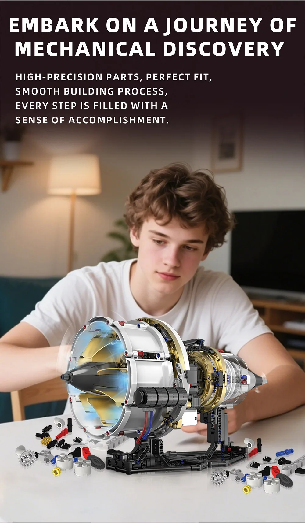 K96208 Aerospace Turbofan Engine Building Block Model Kit App Programming with Light Kit Brick Collection Ornaments Adult Gift