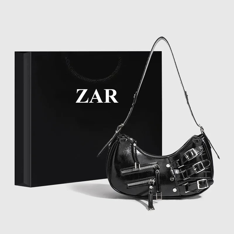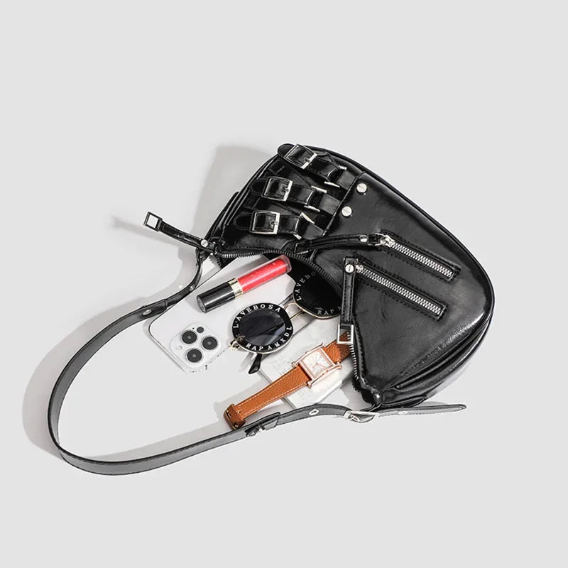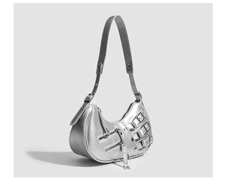 Korean Style High-end Feely2k Spicy Girl Underarm Bag 2024 New Street Trendy Cool Motorcycle Bag Fashionable Versatile Shoulder