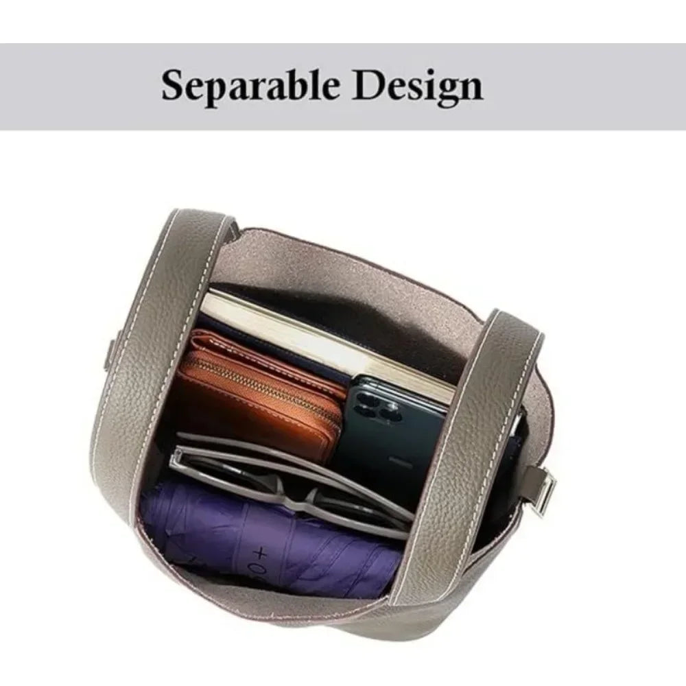 Ladies Handbag Female Bucket Bag Basket Shoulder Bag Travel BagLeather Bucket BagLarge Soft Leather Tote with Lock Daily