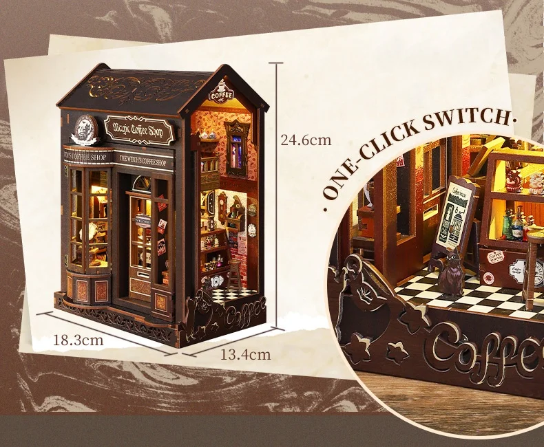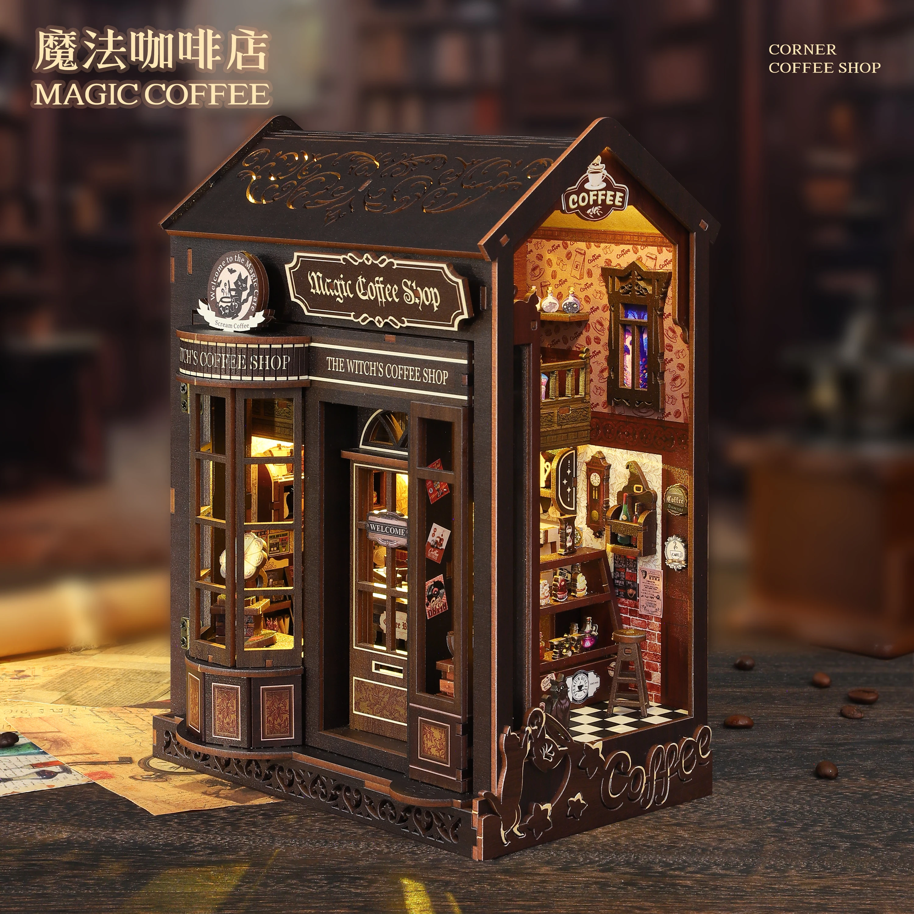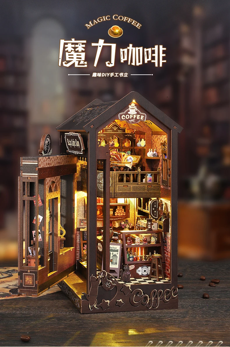 Magical Coffee DIY Book Nook Kit - 3D Miniature House Model, Creative Bookshelf Decor Gift Black Friday