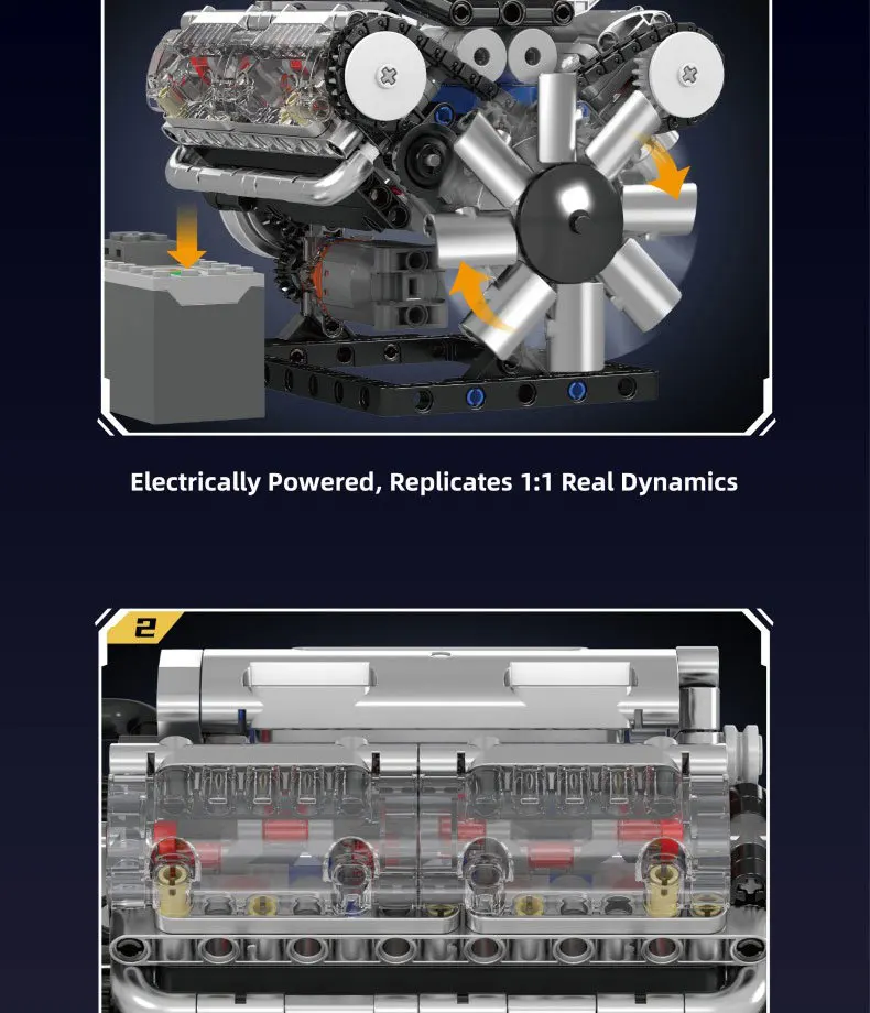 MOULD KING 10088 V8 Engine Building Block Model 535pcs DIY Mechanical Assembly Kit for Adults Educational Gift & Ornament