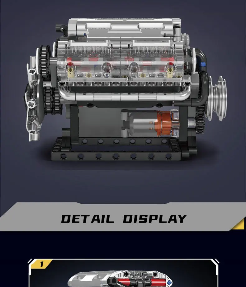 MOULD KING 10088 V8 Engine Building Block Model 535pcs DIY Mechanical Assembly Kit for Adults Educational Gift & Ornament