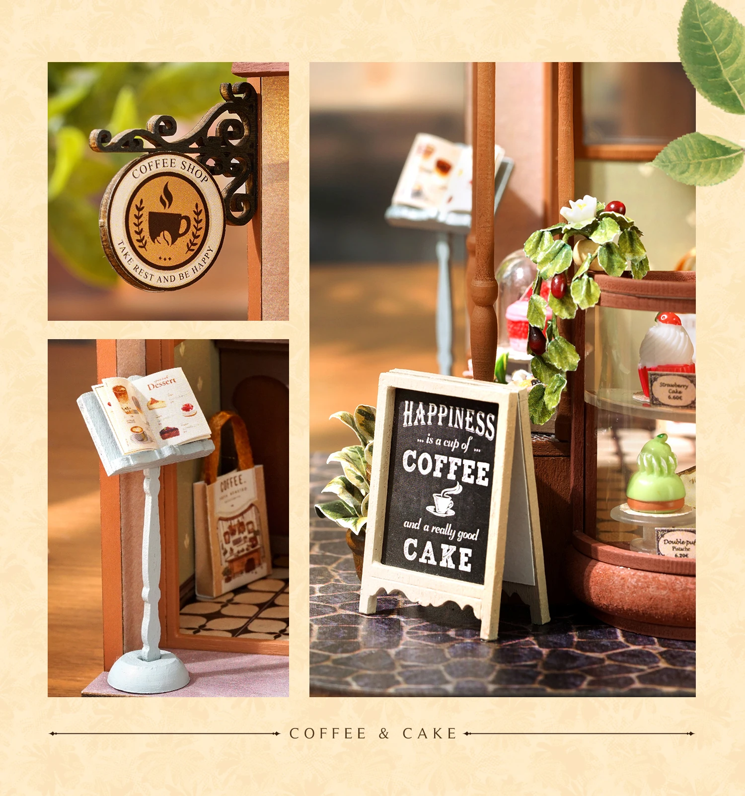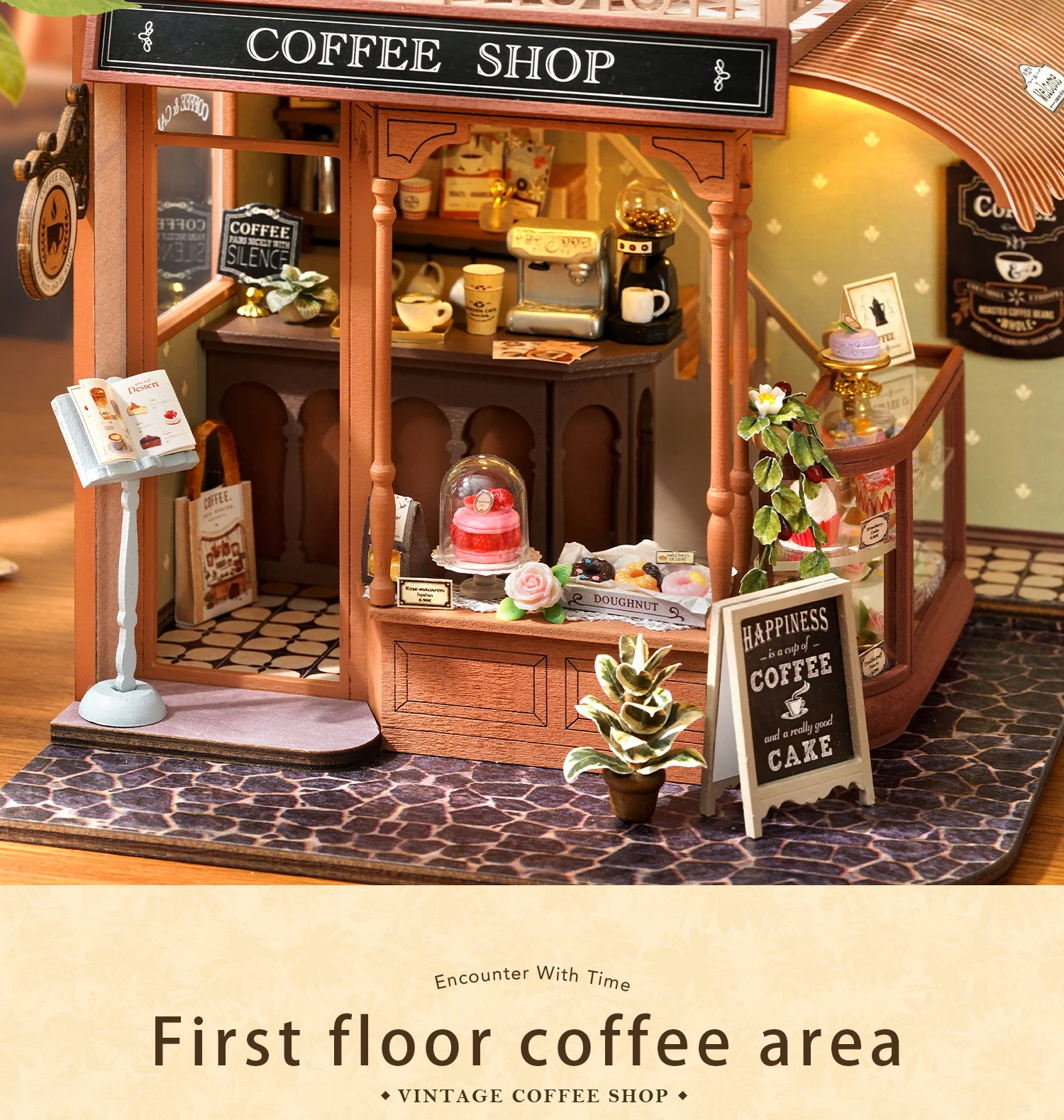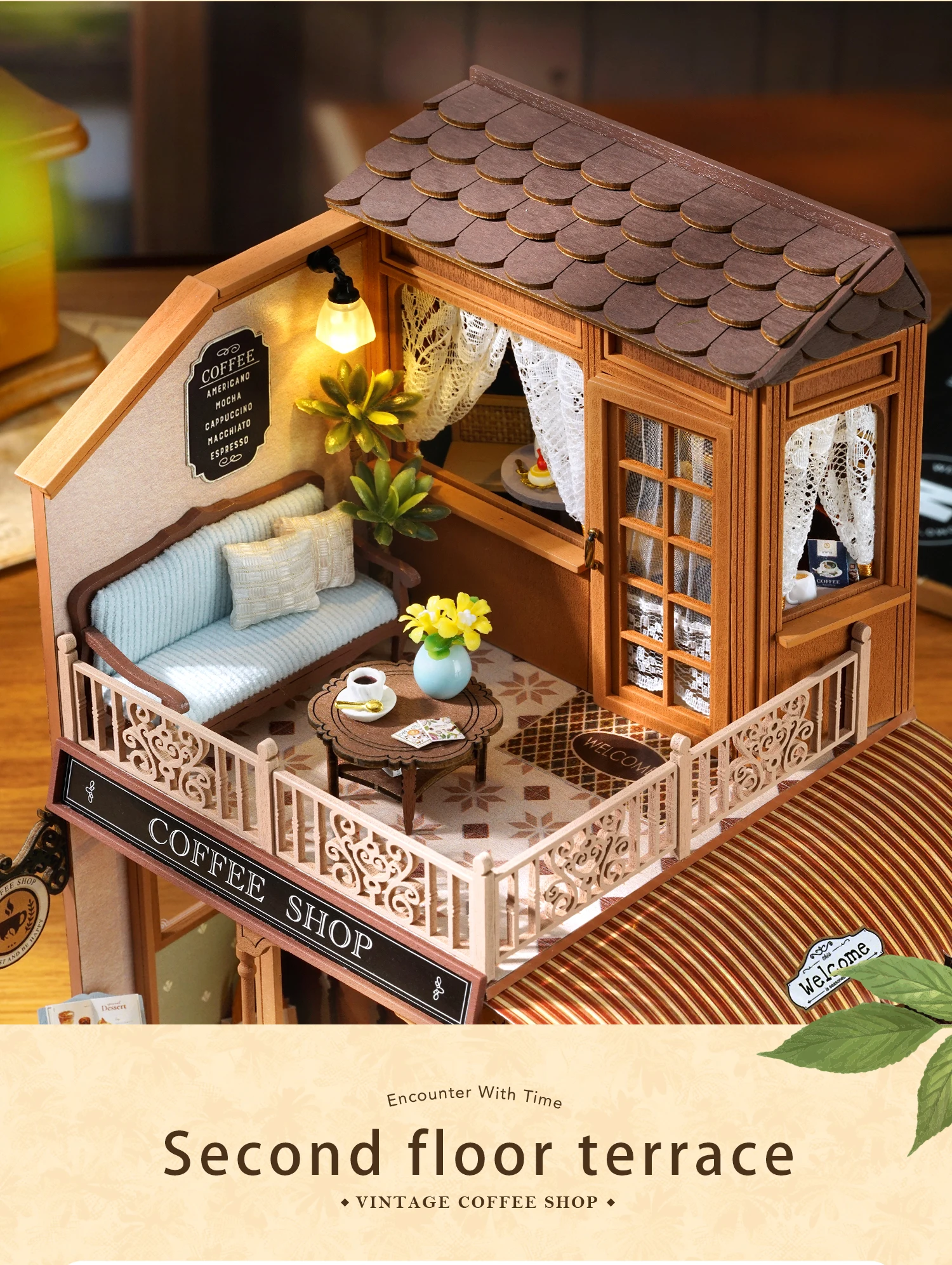 New DIY Miniature House Kit - Encounter with Time,Melody of Happiness' Retro Sweet Style Coffee-Themed Creative Gift