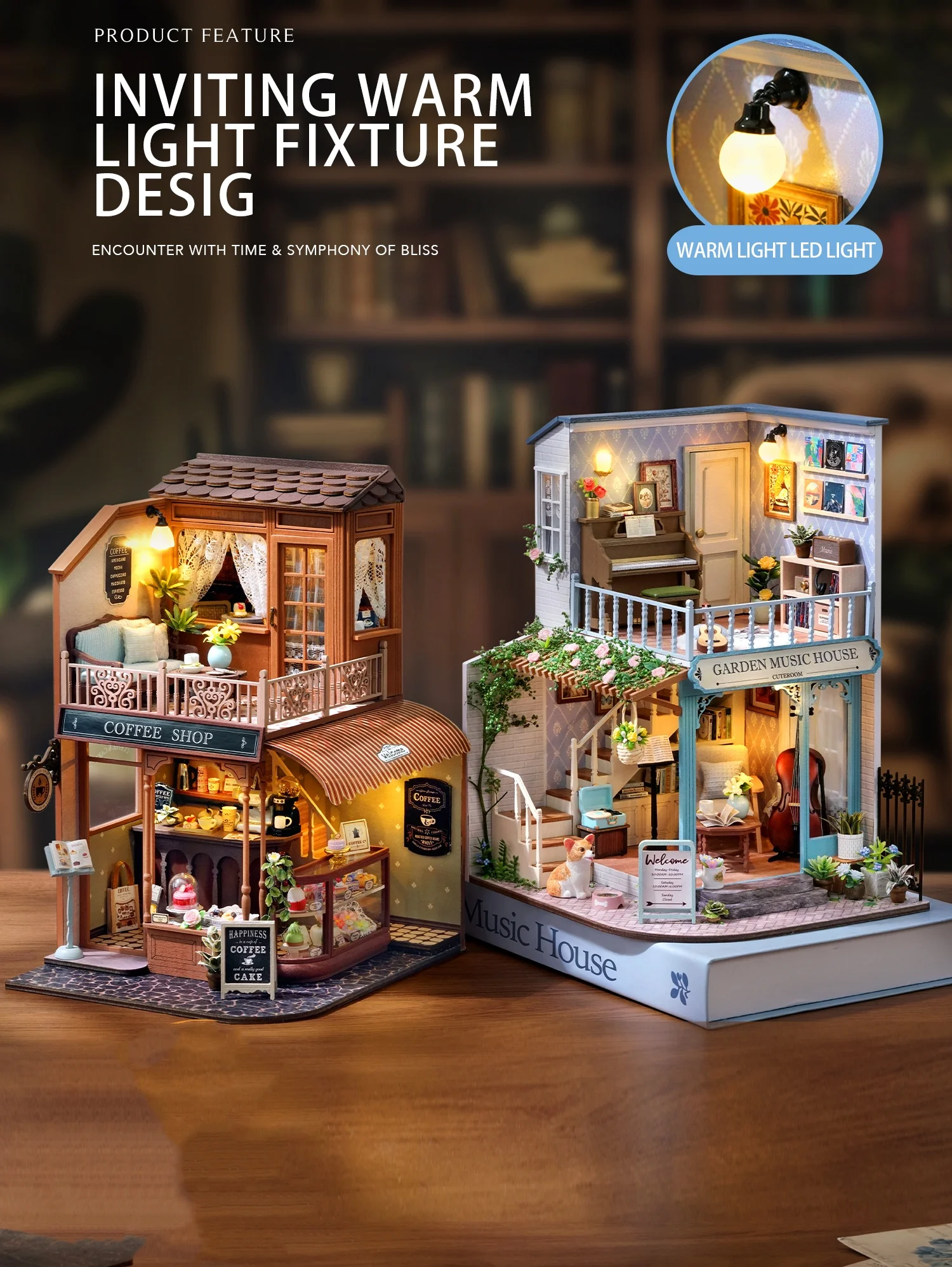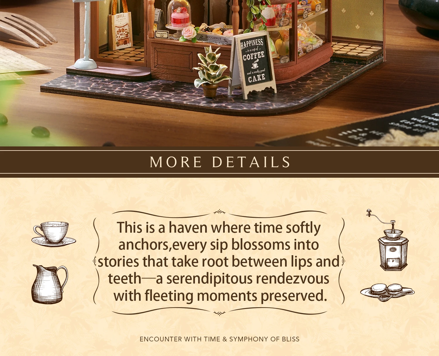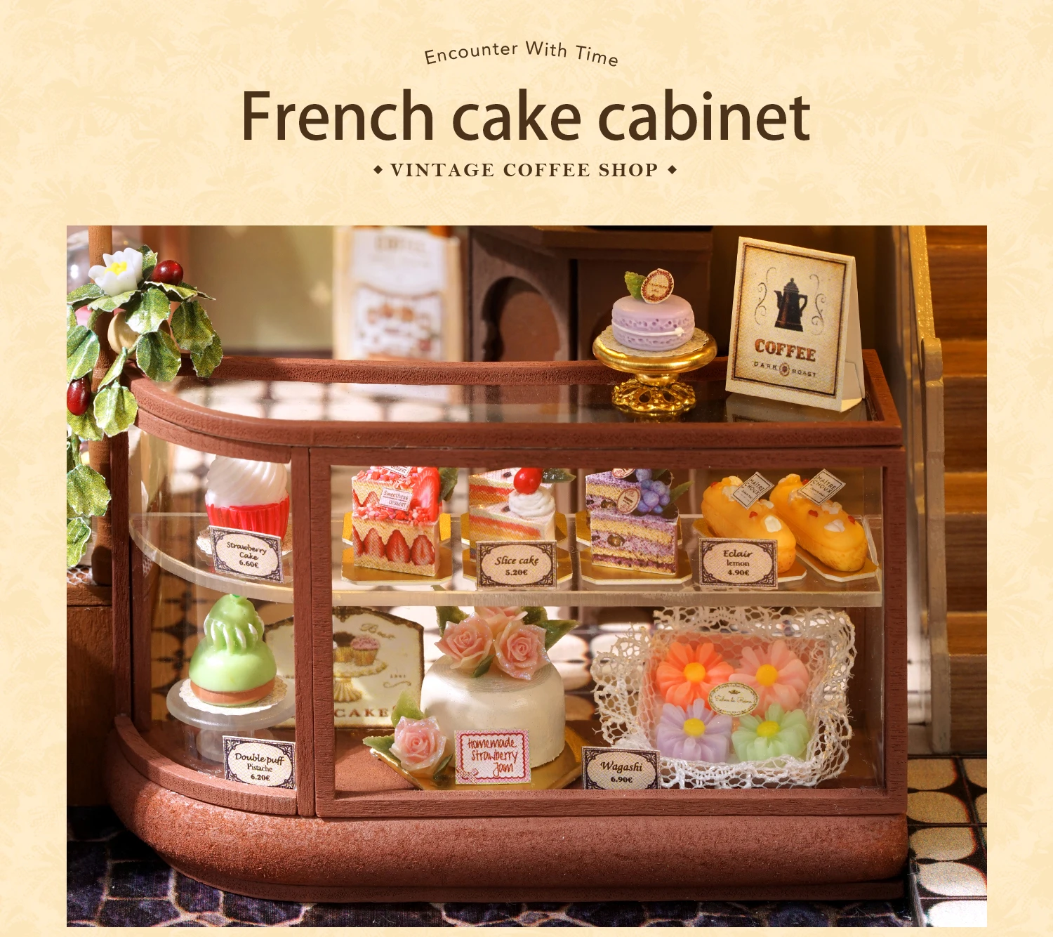 New DIY Miniature House Kit - Encounter with Time,Melody of Happiness' Retro Sweet Style Coffee-Themed Creative Gift