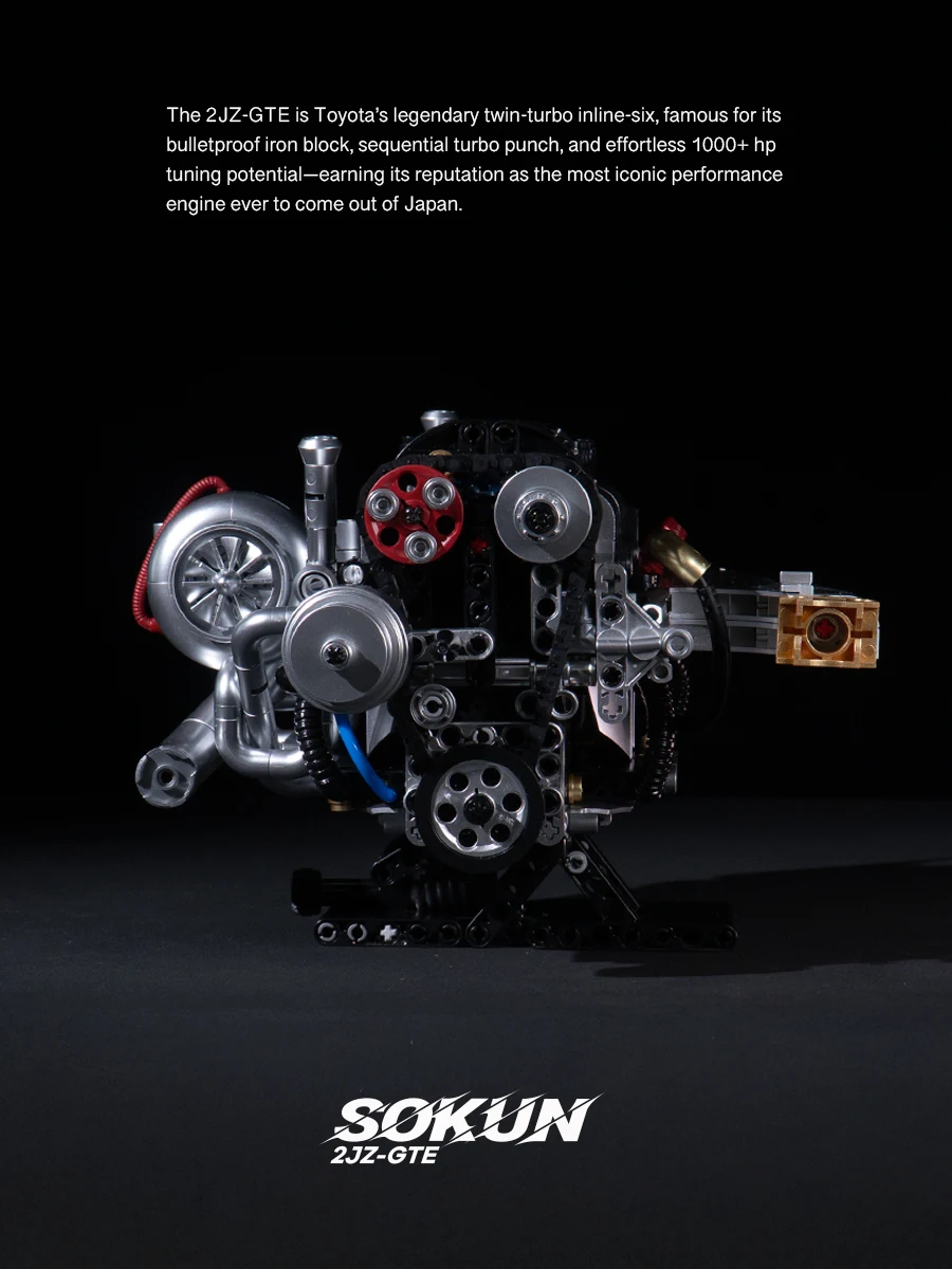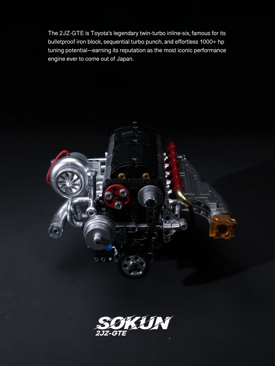 PB8814 Creative 2JZ-GTE Engine Building Block Model Toy JDM Japanese Retro Sports Car Engine Kit 974 Bricks Adult Holiday Gift