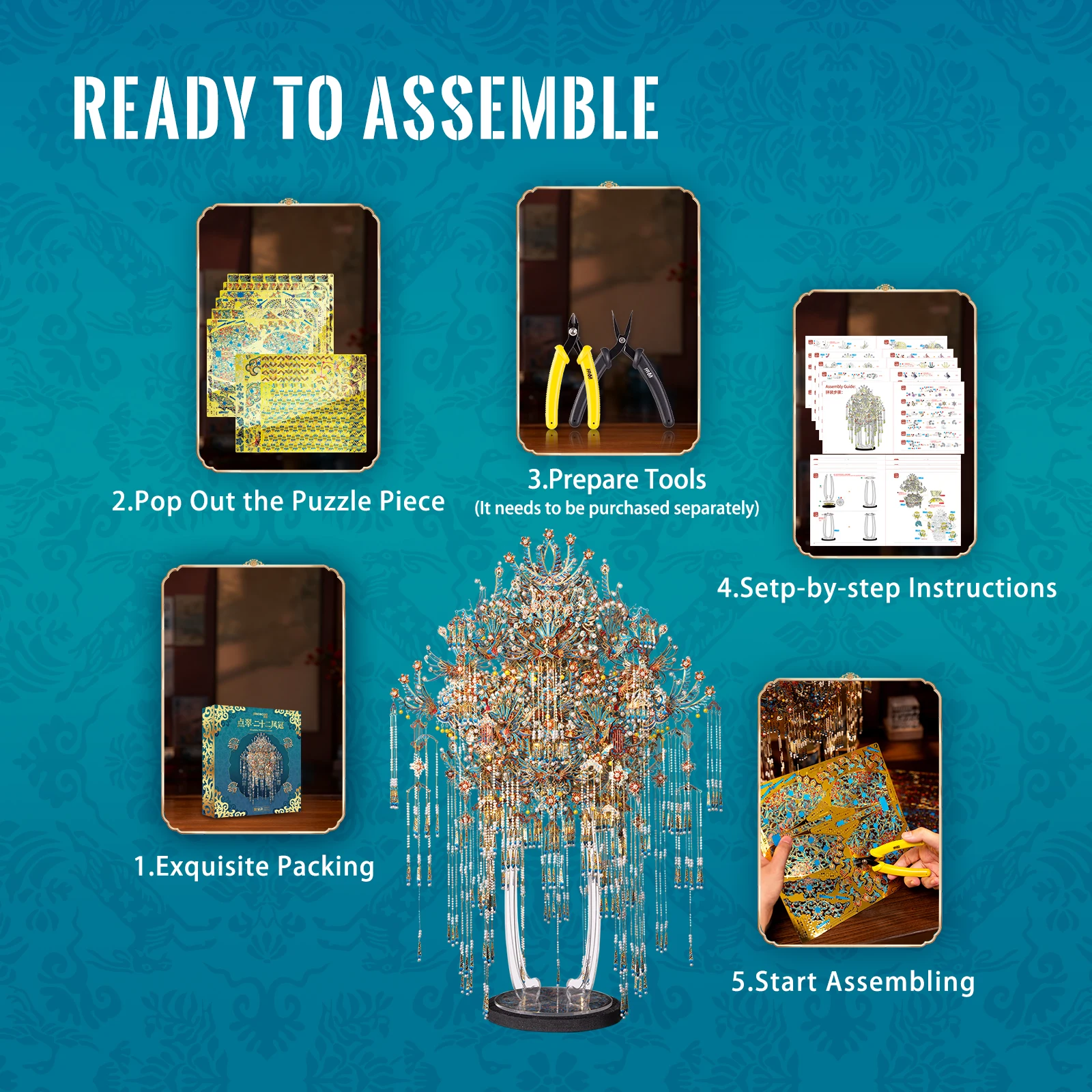 Piececool 3D Metal Model Kits Kingfisher Phoenix Coronet Metal Puzzle 3D Jigsaw DIY Crafts for Home Decoration