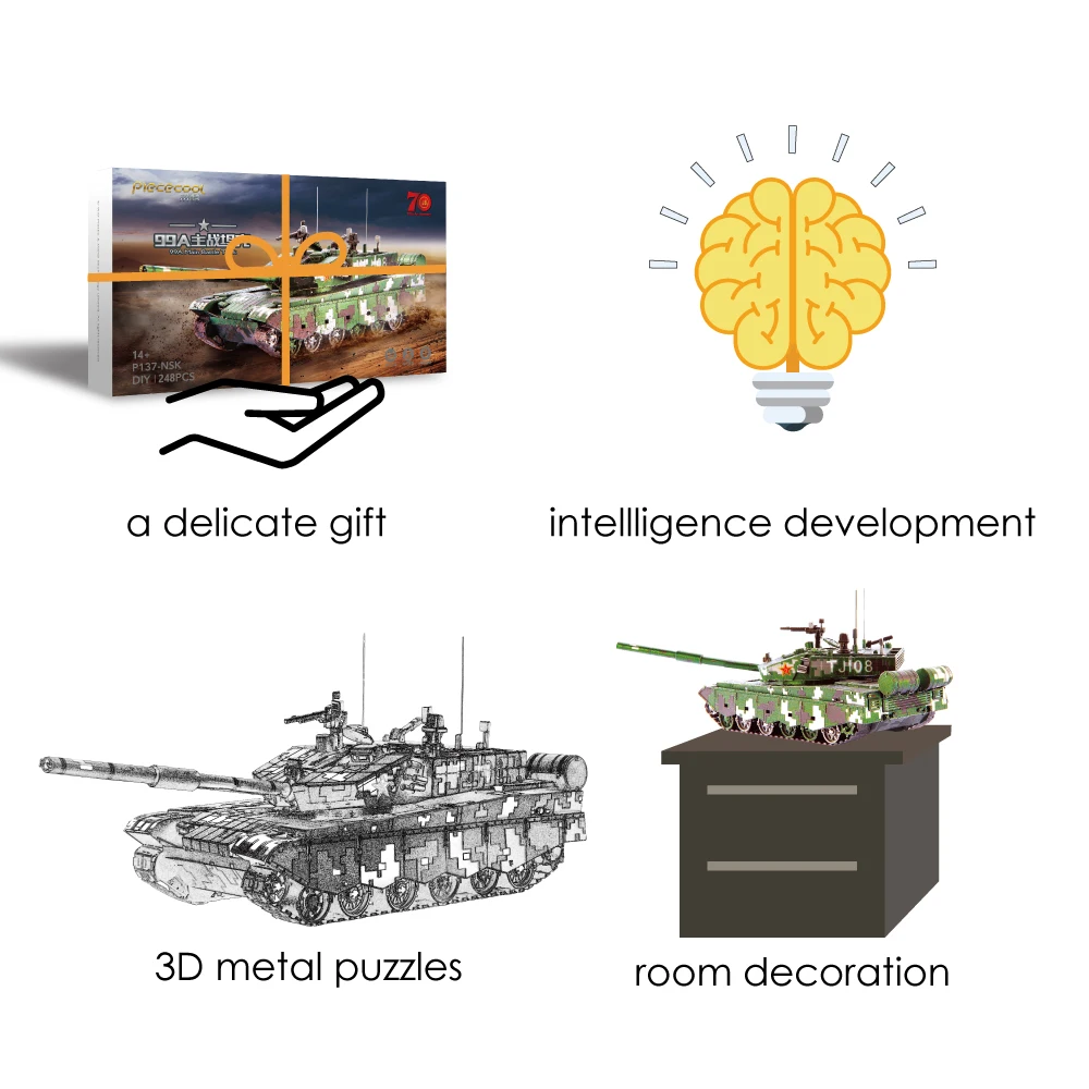 Piececool 3d Metal Puzzles Battle Tank Model Kits DIY for Adult Brain Teaser Toys Birthday Gifts