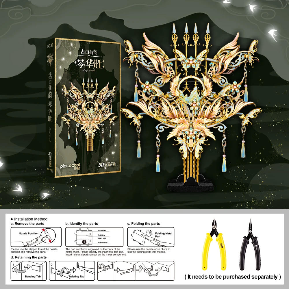 Piececool 3D Metal Puzzles Harp Comb DIY Set for Home Decoration Assembly Model Kits Birthday Gifts