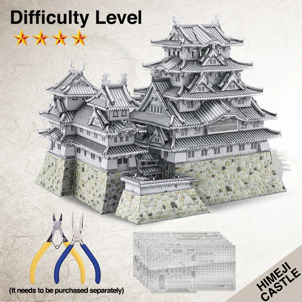 Piececool 3D Metal Puzzles Himeji-jo Castle Assembly Model Kits DIY Jigsaw Toys for Adult Gifts and Home Decoration