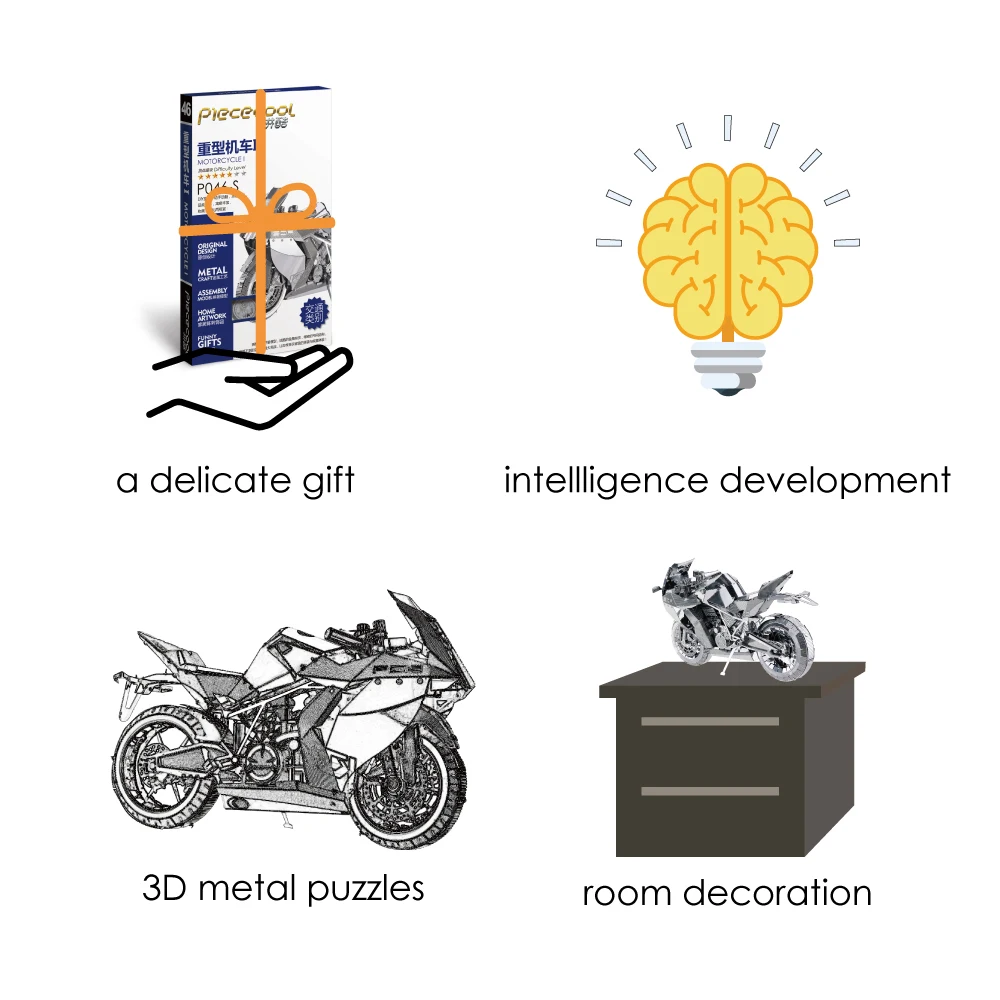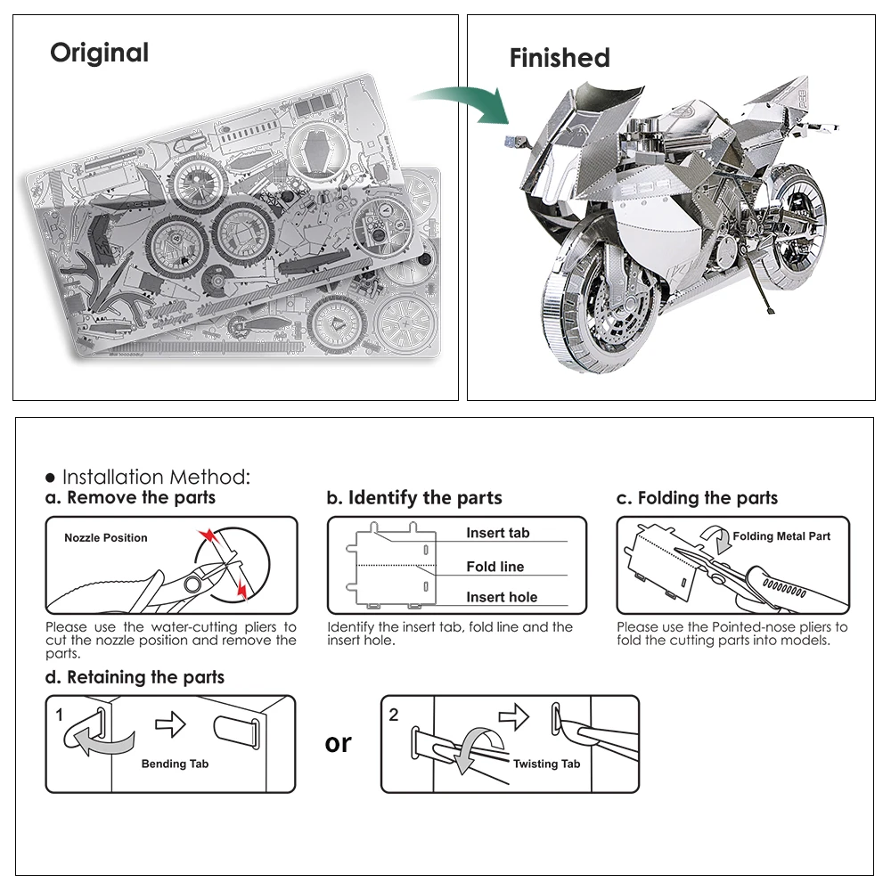 Piececool 3D Metal Puzzles Silver Motorcycle Assembly Model Toys Jigsaw DIY for Adult