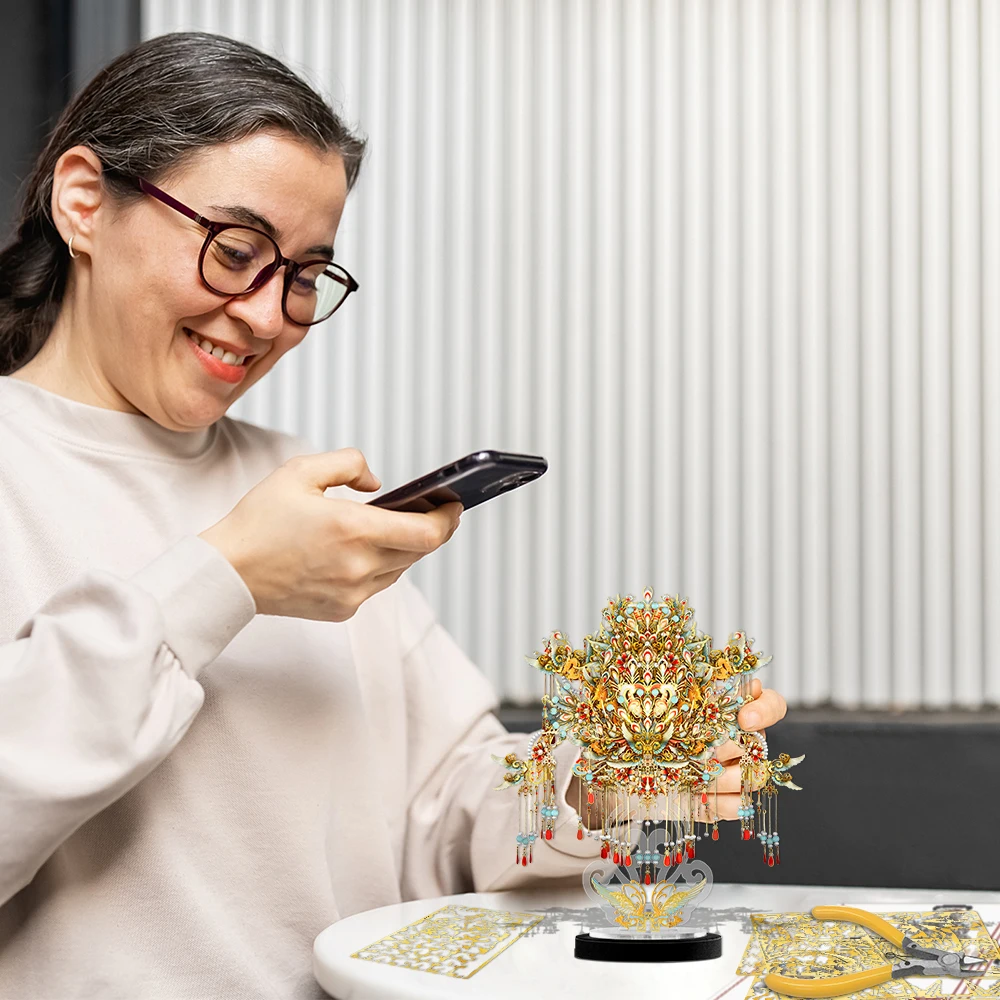 Piececool 3D Puzzles Nine Dragons and Nine Phoenix Crown Metal Assembly Model Kits DIY Set for Adult Jigsaw Gifts for Collection