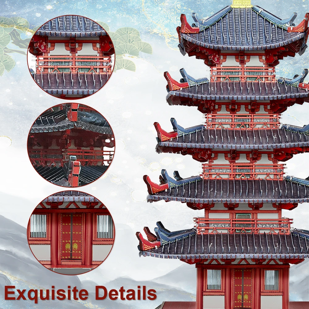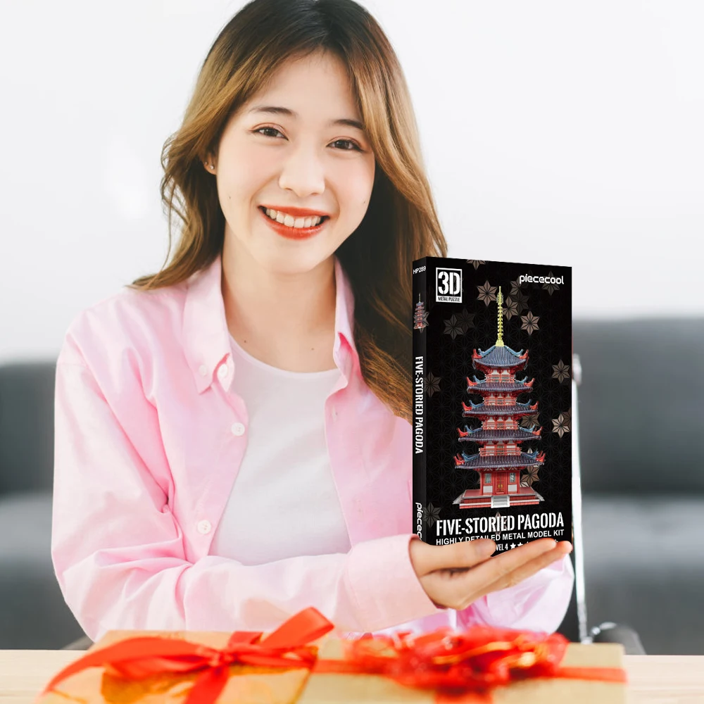 Piececool Puzzle 3D Metal Five-storied Pagoda Game Assembly Constructor Toy Model Building Kits Jigsaw Gift for Teen