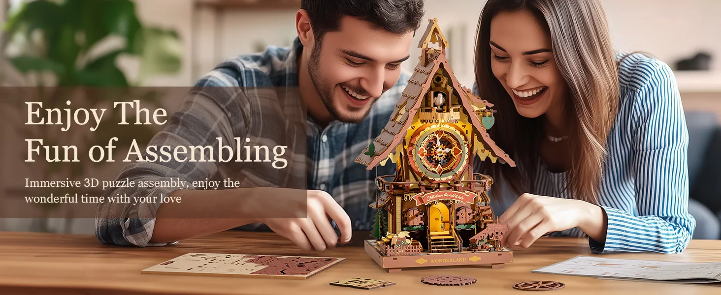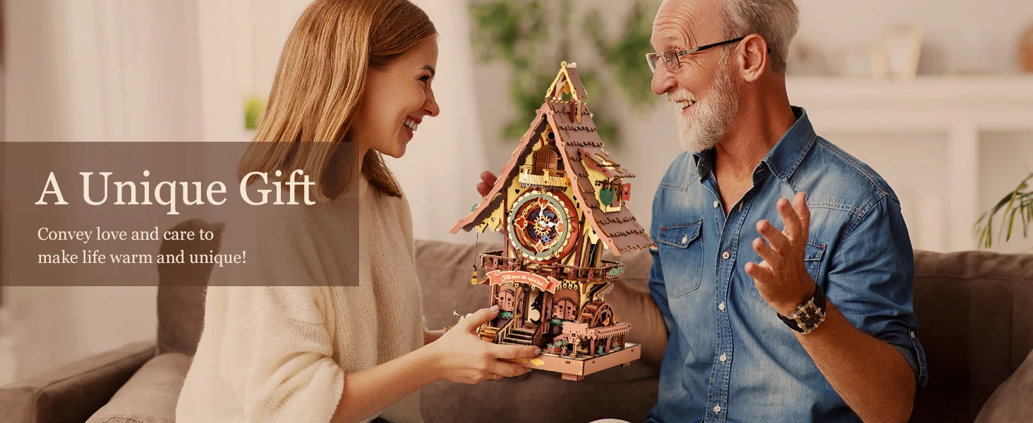 Robotime ROKR Cuckoo Clock Mechanical 3D Wooden Puzzle Christmas Cuckoo Clock Building Kit Holiday DIY Project for Teens Adults