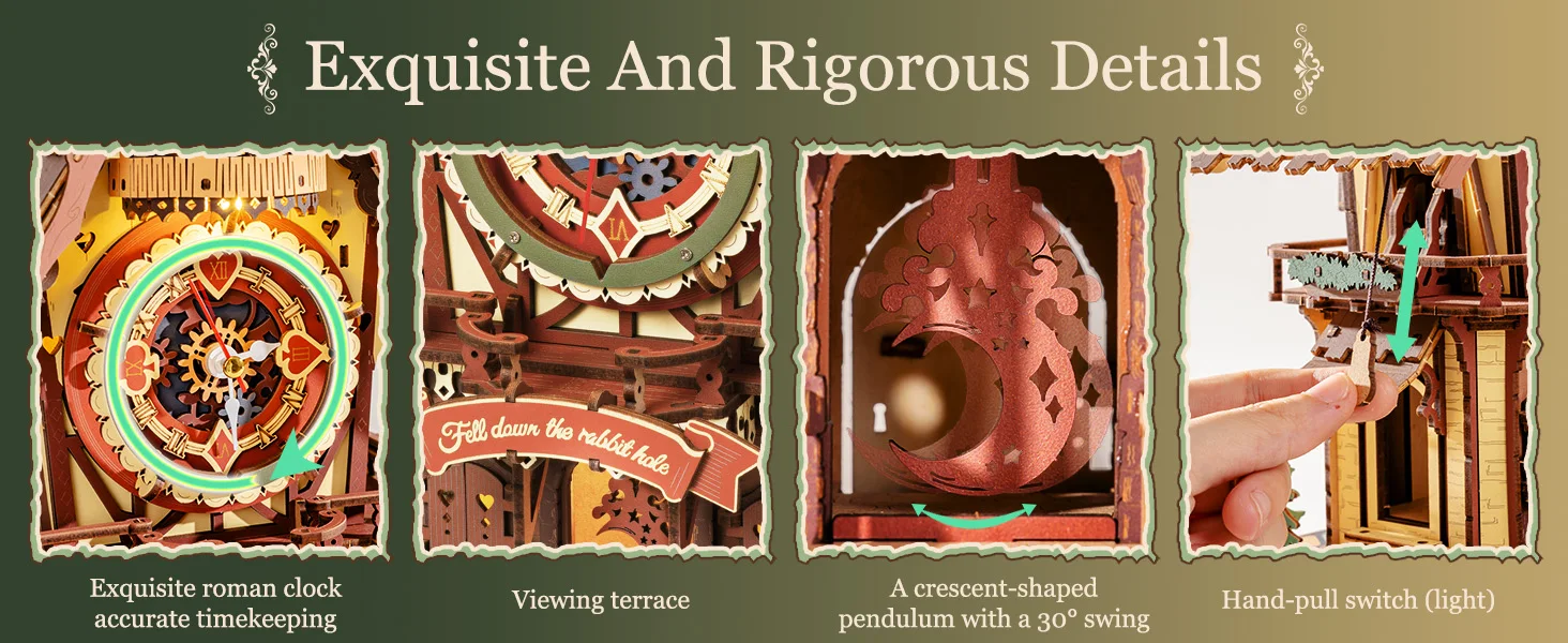 Experience the magic on the hour! This isn't just a clock; it's a performance. Every 60 minutes, the mechanical cuckoo bird springs to life, leaning out with flapping wings to deliver a cheerful "coo-coo" call. Synchronized with this display, a soft, warm light instantly illuminates the entire scene, transforming your room into a living fairy tale.