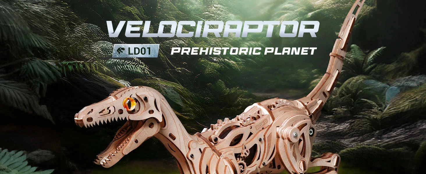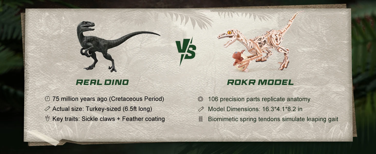 Robotime Rokr Velociraptor Mechanical 3D Wooden Puzzle Dynamic gears Creative Relaxing Gift for Craft lover Kids Adults