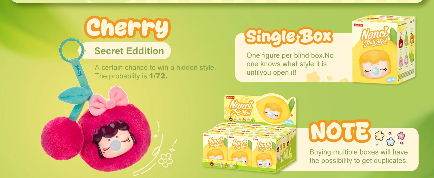 Whether it’s for a birthday, holiday, or just because, the Nanci Fruit Mood Blind Box makes an adorable gift for anime lovers, plush collectors, and anyone who adores cute surprises