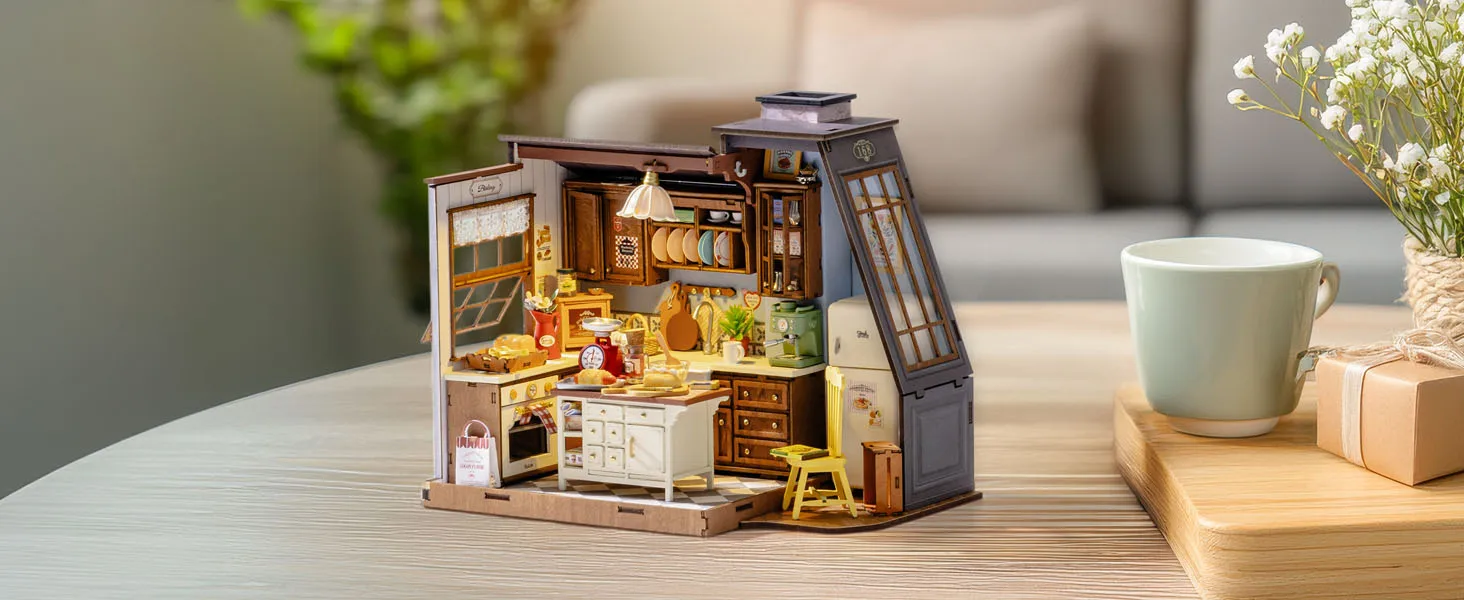 Rolife DIY Miniature House Kit Model Kit Dolls House Baking Kitchen 3D Puzzle Mini House Building Kit Craft Kit For Teens Adults