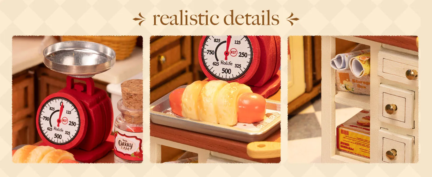 This adult craft kit brings bakeries to life: includes functional tools like a spring scale and glass mixing bowl, plus appliances like an oven, faucet-equipped sink, and espresso machine. Every 1:18 scale piece whispers: "Welcome to your mini culinary studio!"