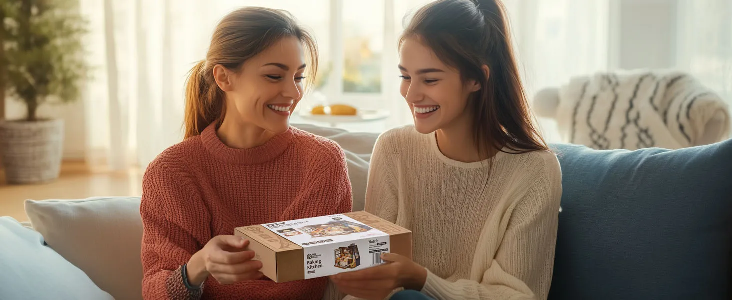 No glue needed—just 359 snap-fit pieces to assemble a miniature house with LED lighting. This 6-hour immersive challenge model, suitable for ages 14+ and adults, enhances spatial skills while creating a cozy interactive bakery. Whether bonding over baking-themed crafting with family, completing a romantic project with a partner, or conquering it solo—every snap whispers "handmade achievement"!
