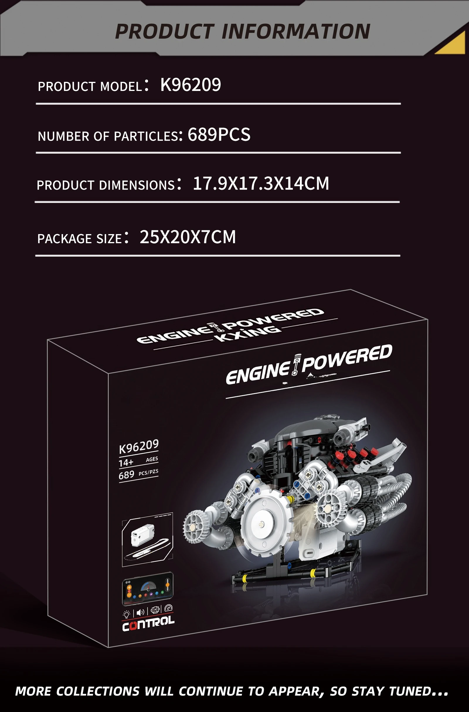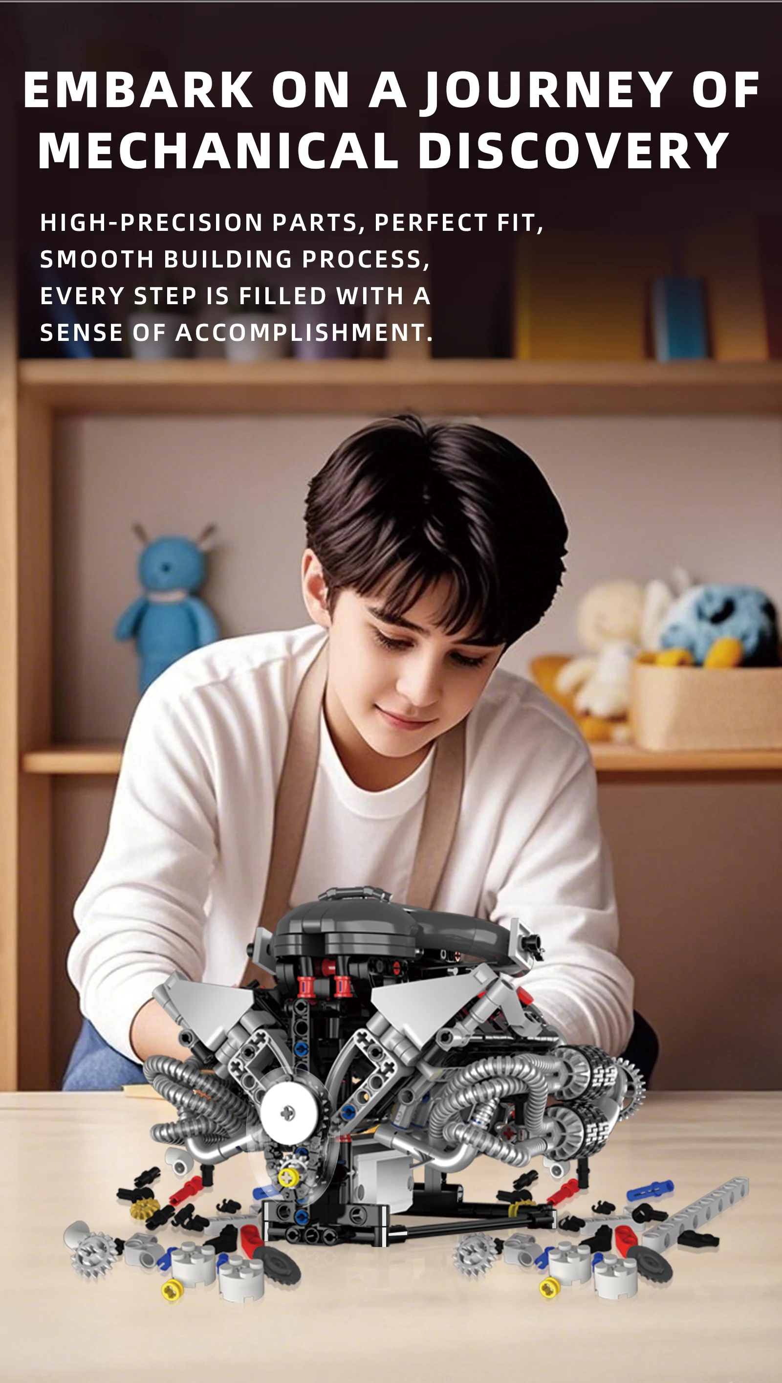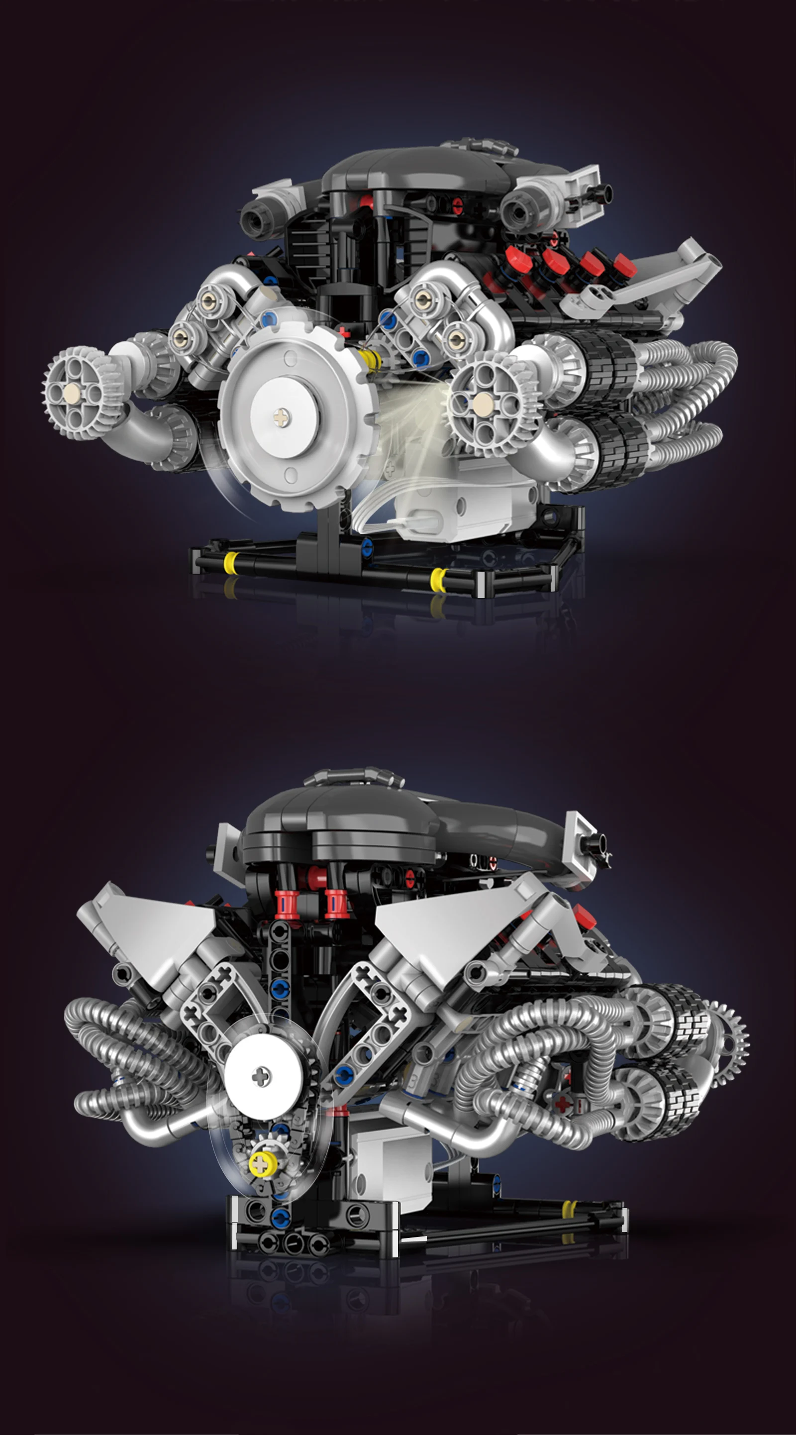 Supercar V8 Engine Technic Parts Block Model 689 Pellet Motor Drive with Light Ambience Perfect Gift for Boys Christmas Birthday