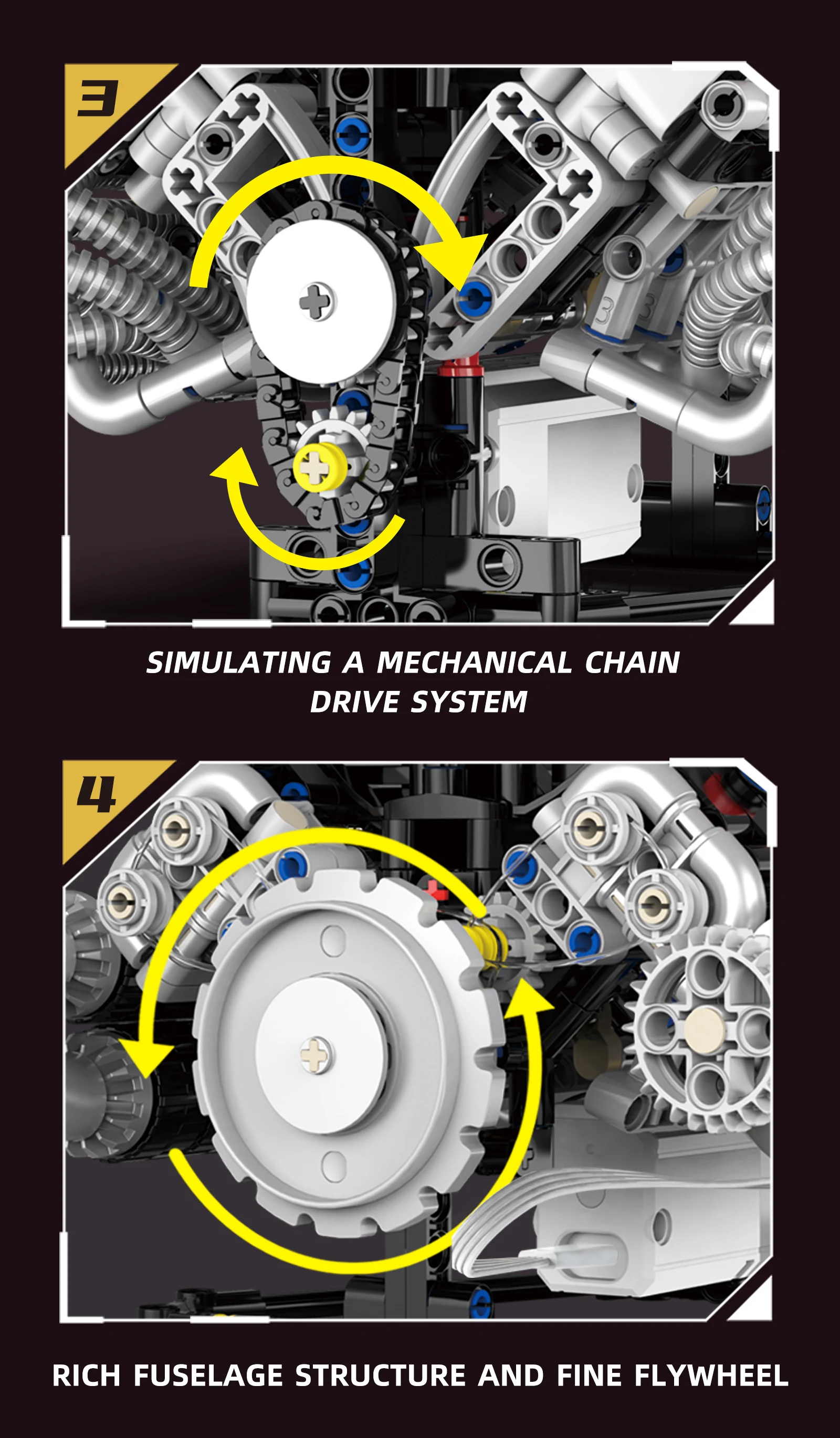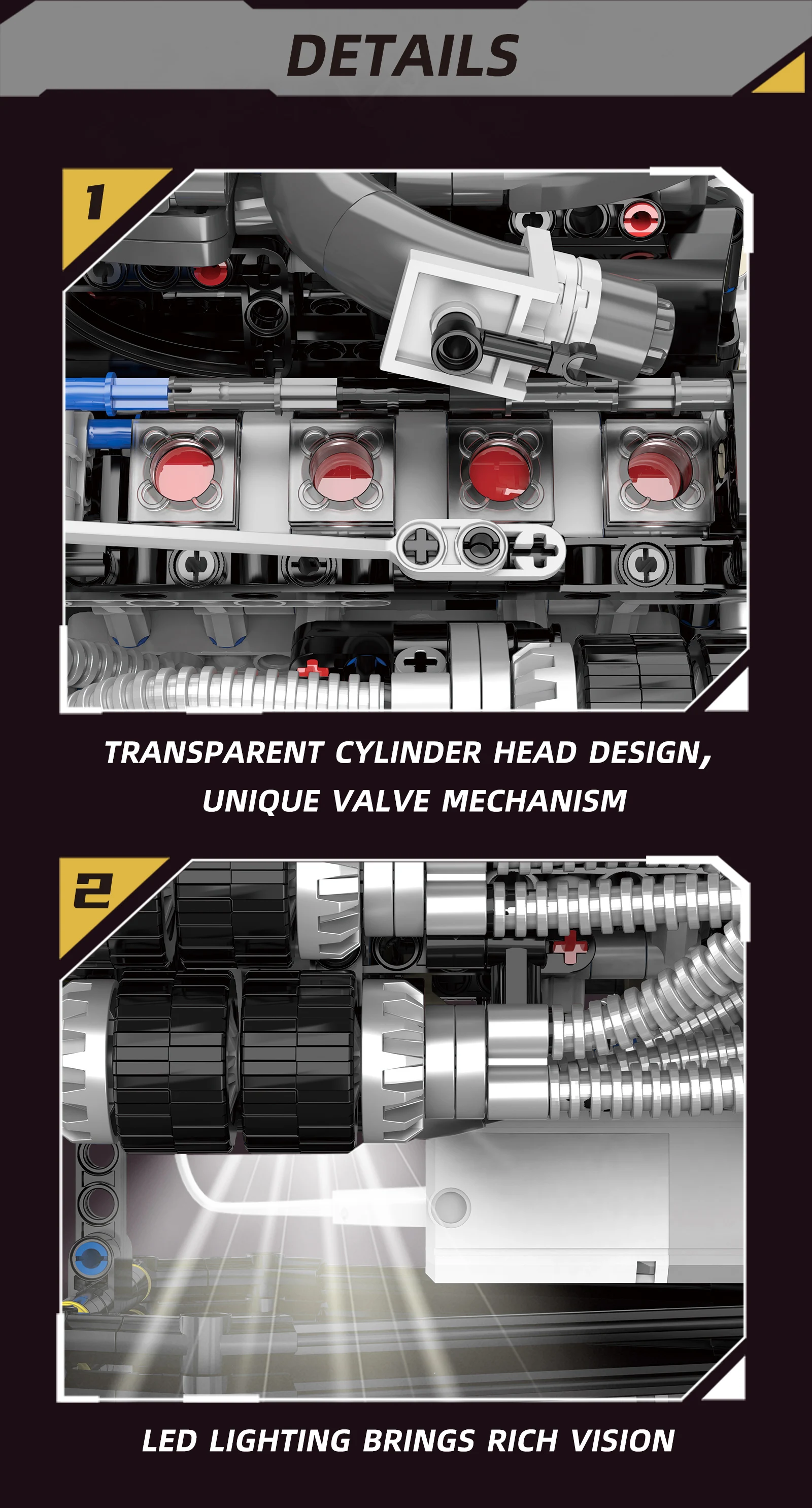 Lights are used to reproduce the strong horsepower output prototype when the engine piston moves;