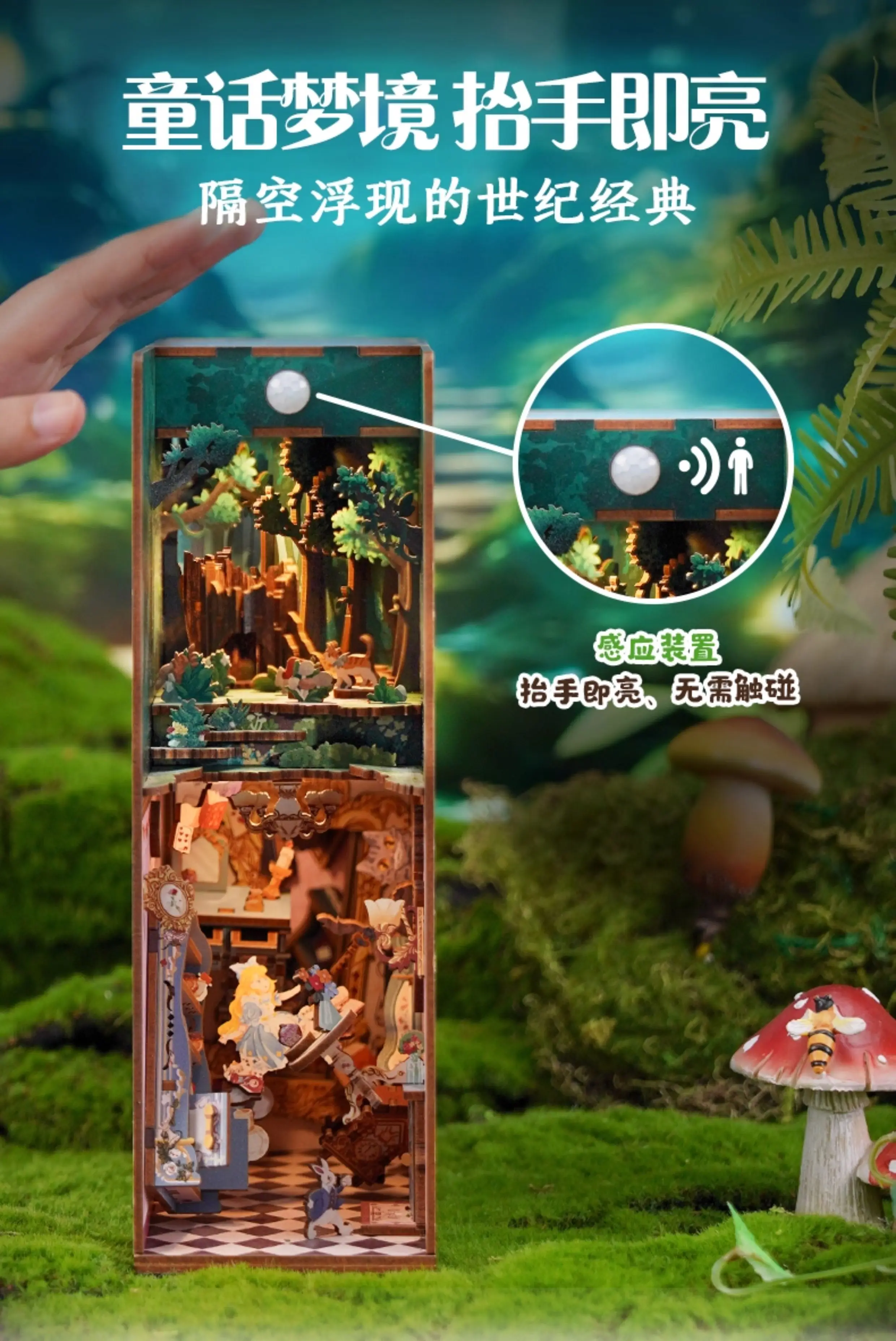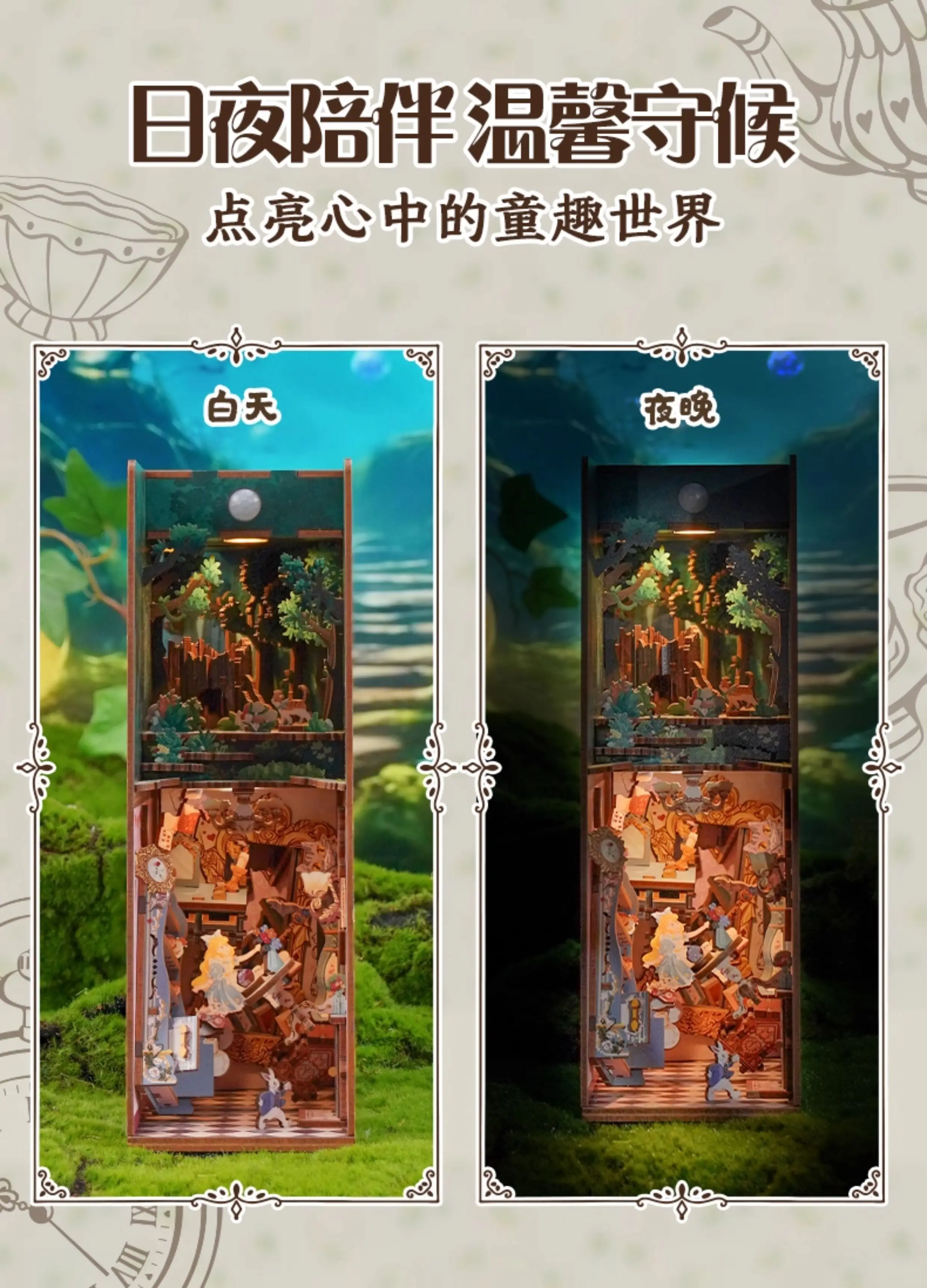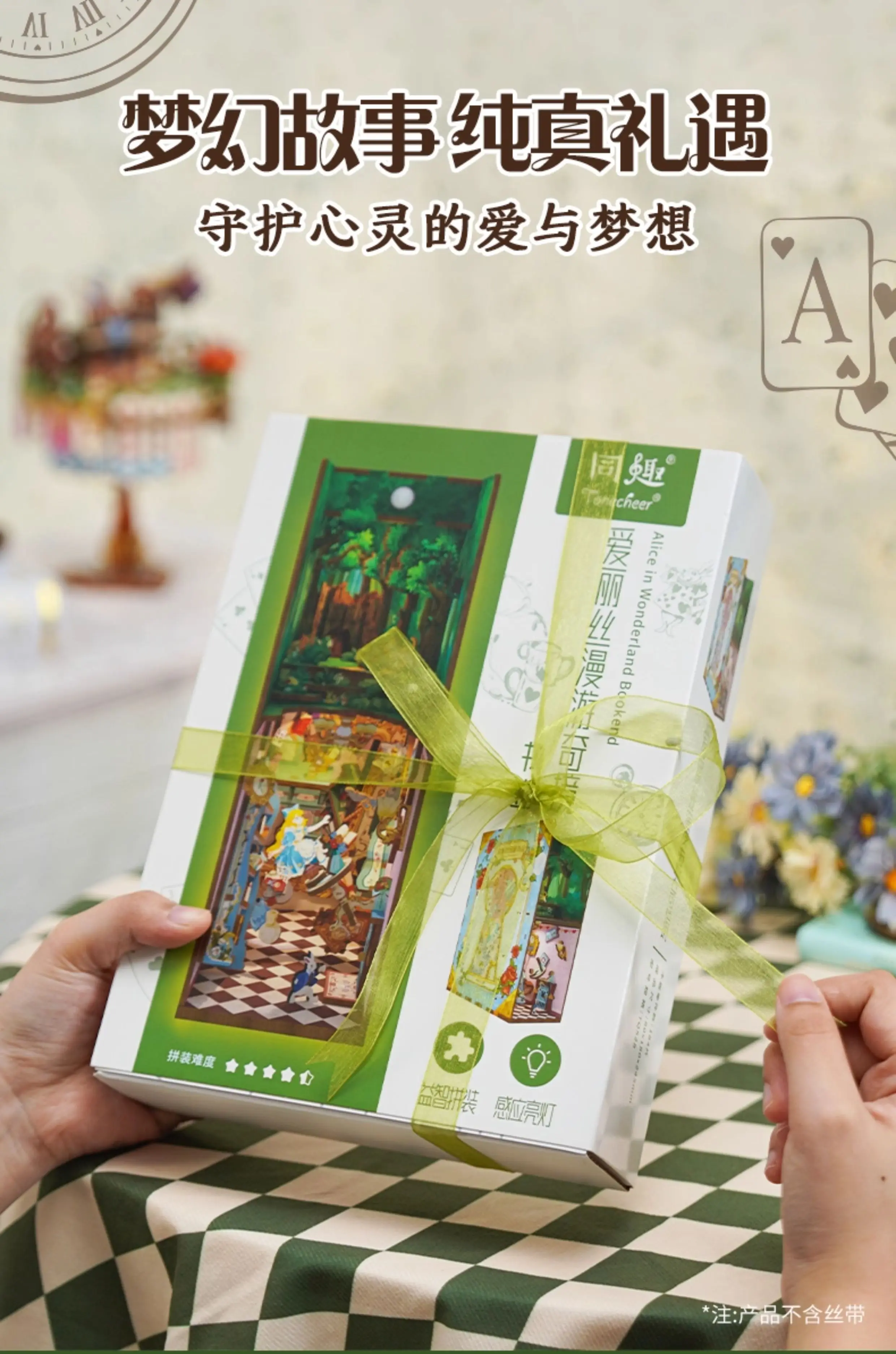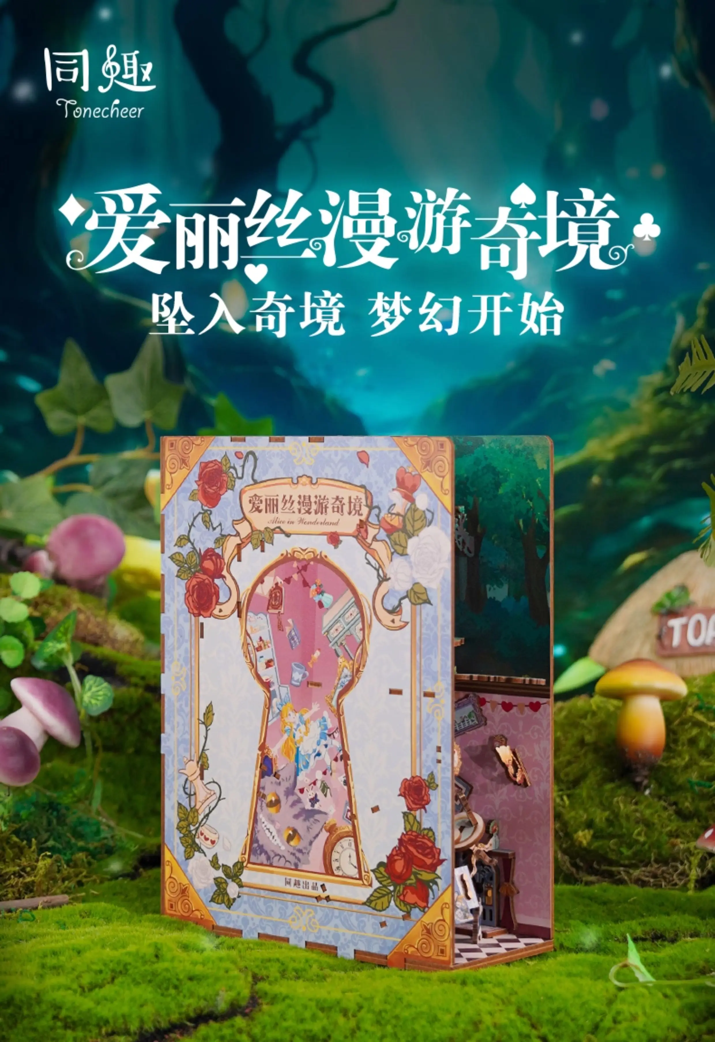 ACG Name:Tonecheer Alice in Wonderland Book Nook Dollhouse DIY Diorama Model Kit 3D Wooden Puzzle Wooden Bookend Decoration Birthday Gift