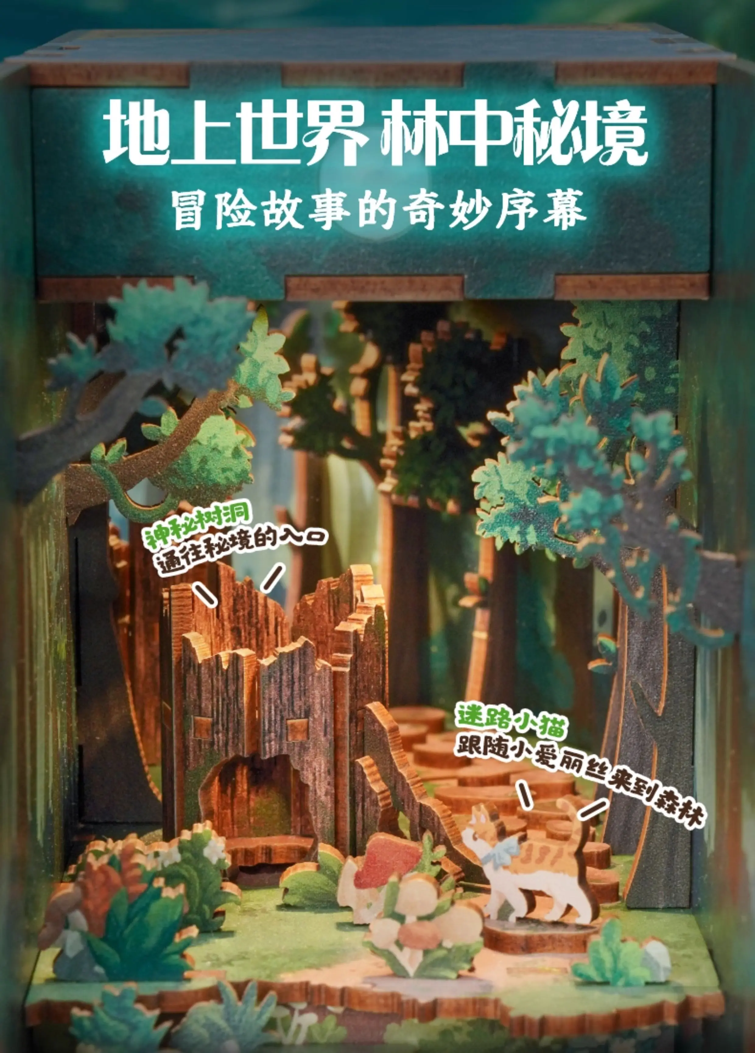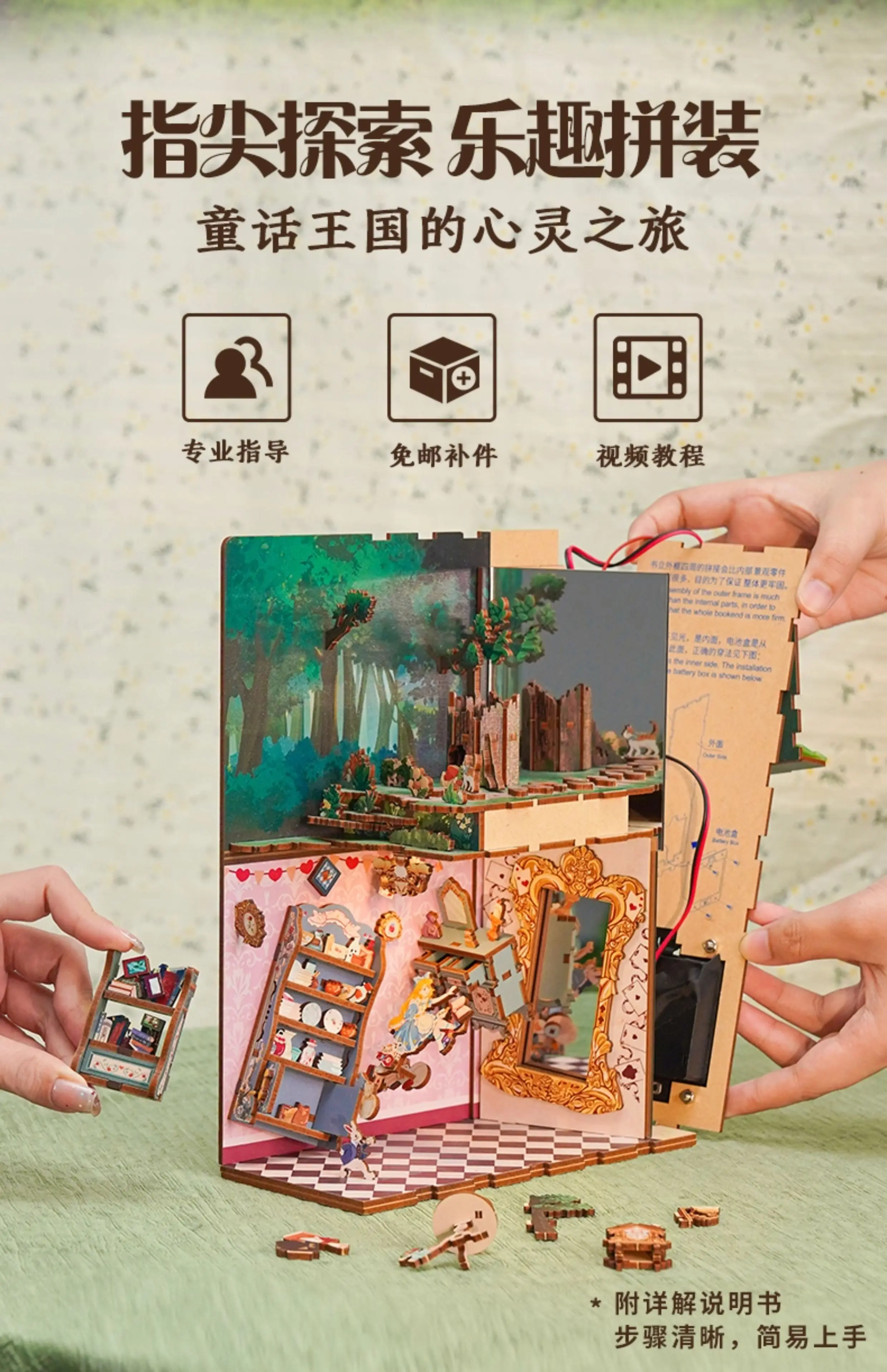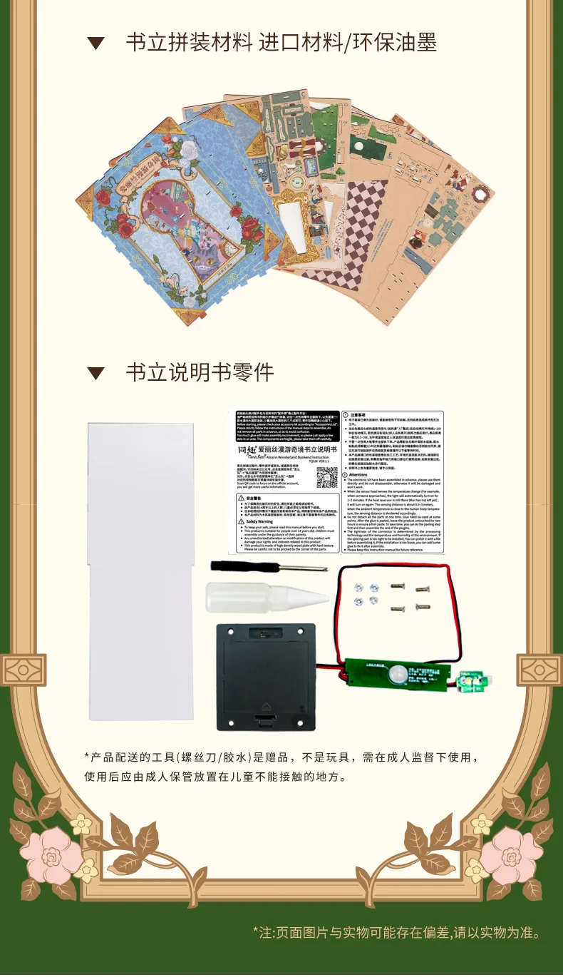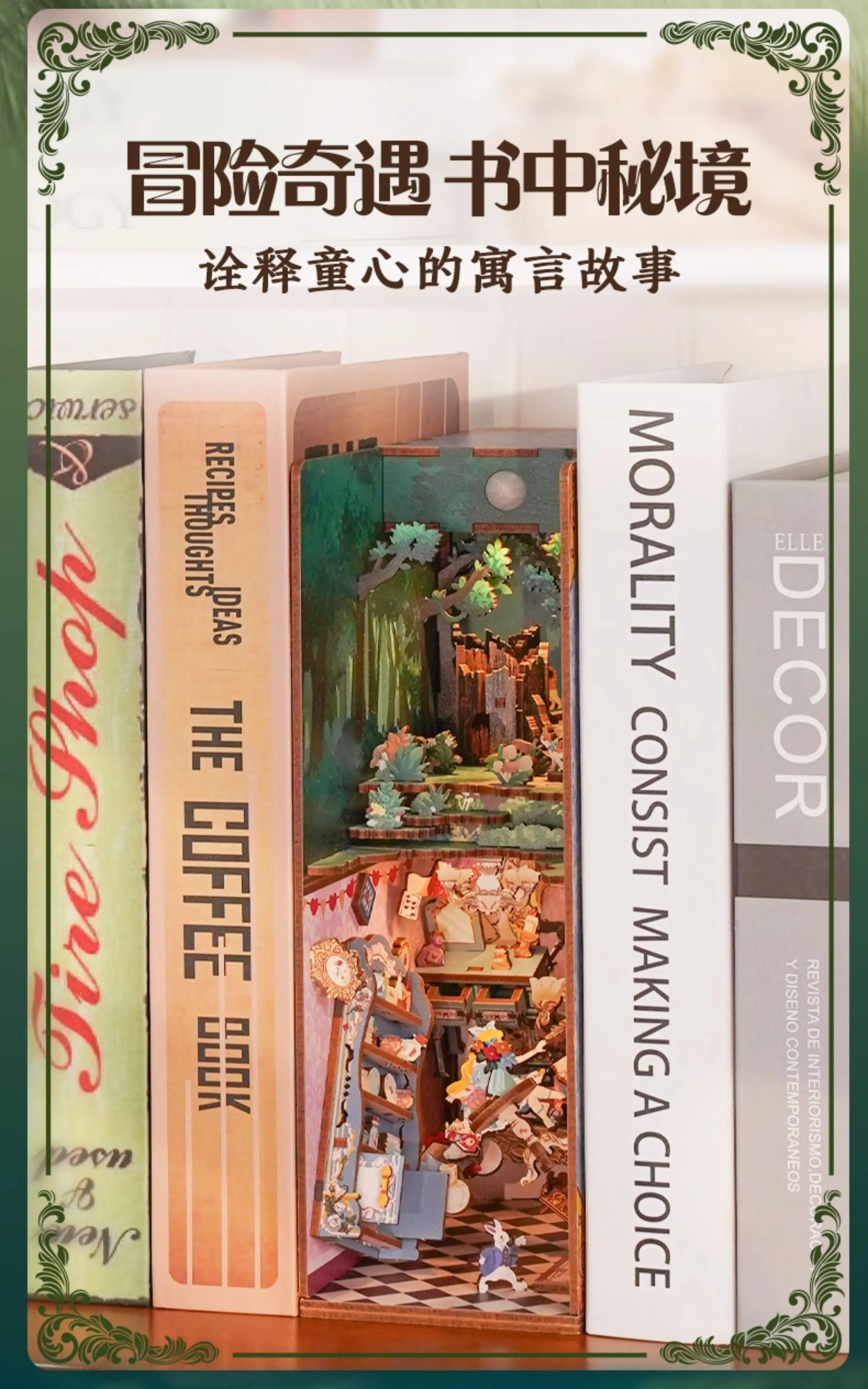 ACG Name:Tonecheer Alice in Wonderland Book Nook Dollhouse DIY Diorama Model Kit 3D Wooden Puzzle Wooden Bookend Decoration Birthday Gift