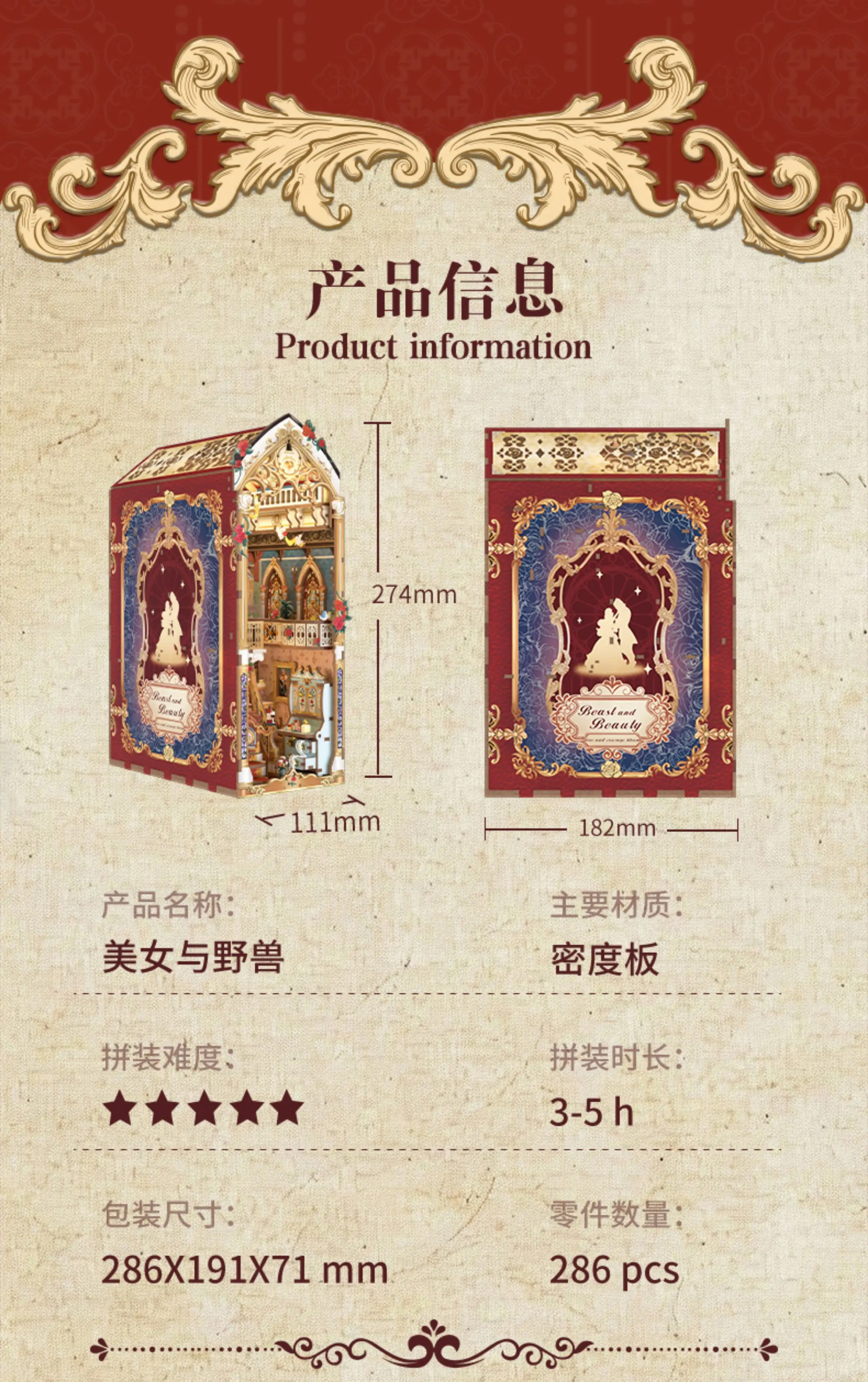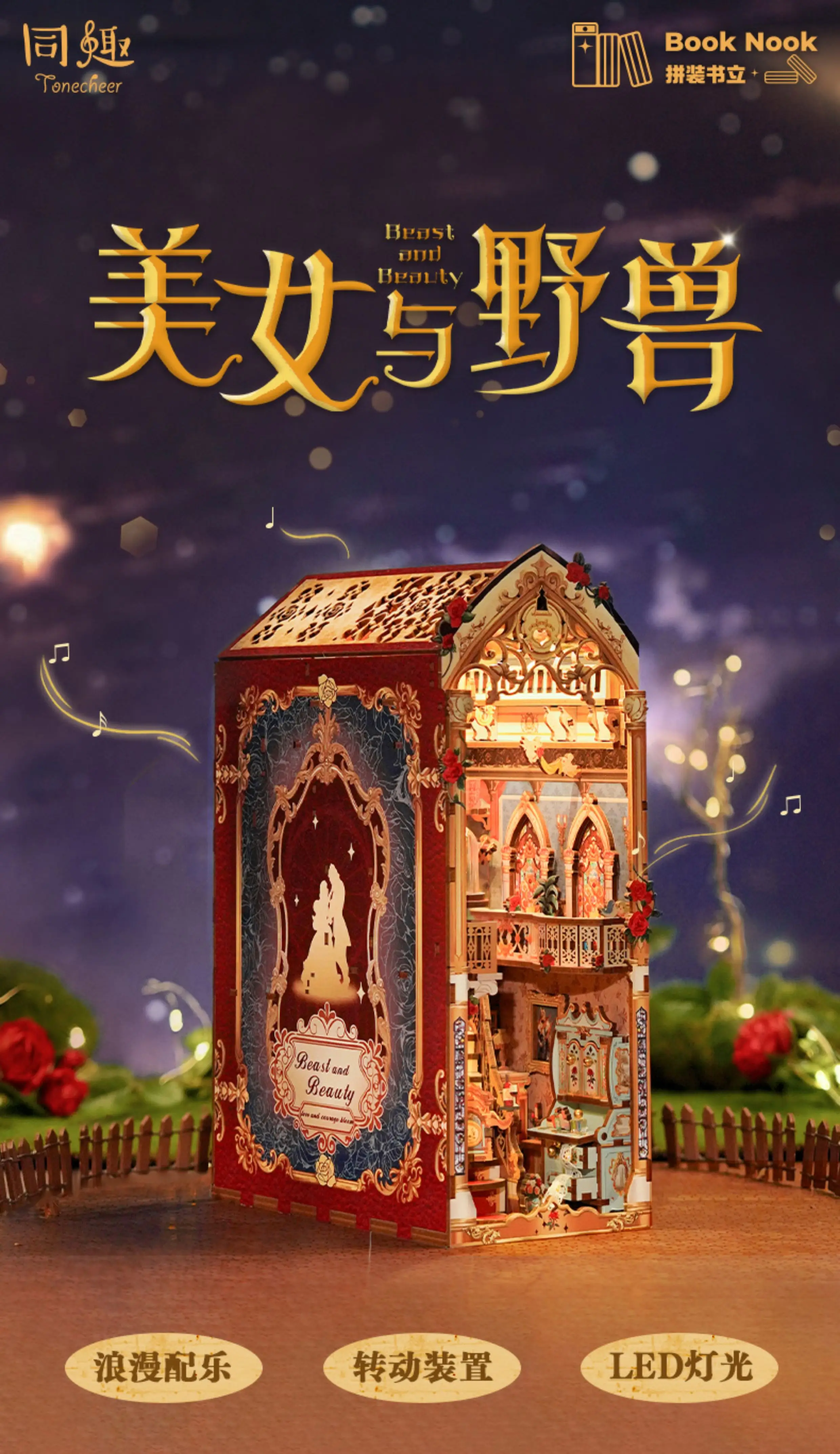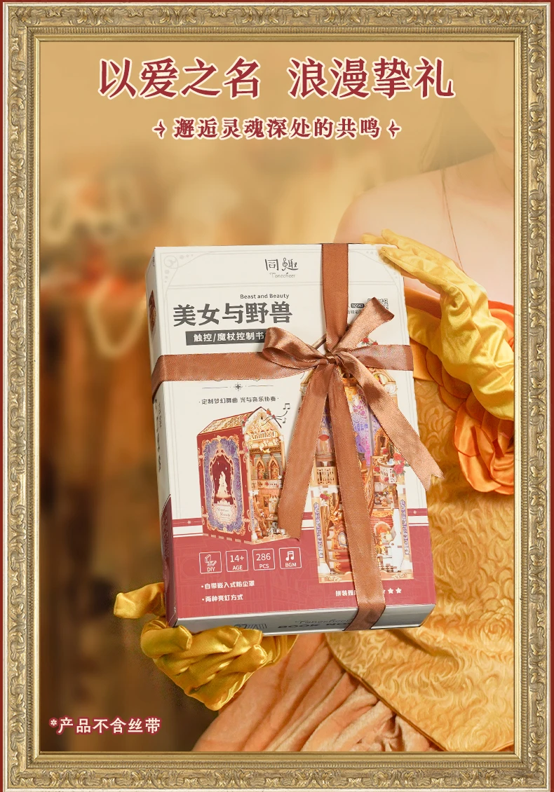 Tonecheer Beauty and The Beast Bookend Book Nook Diorama Model Kit 3D Wooden Puzzle Wooden Dollhouse Decoration Birthday Gift