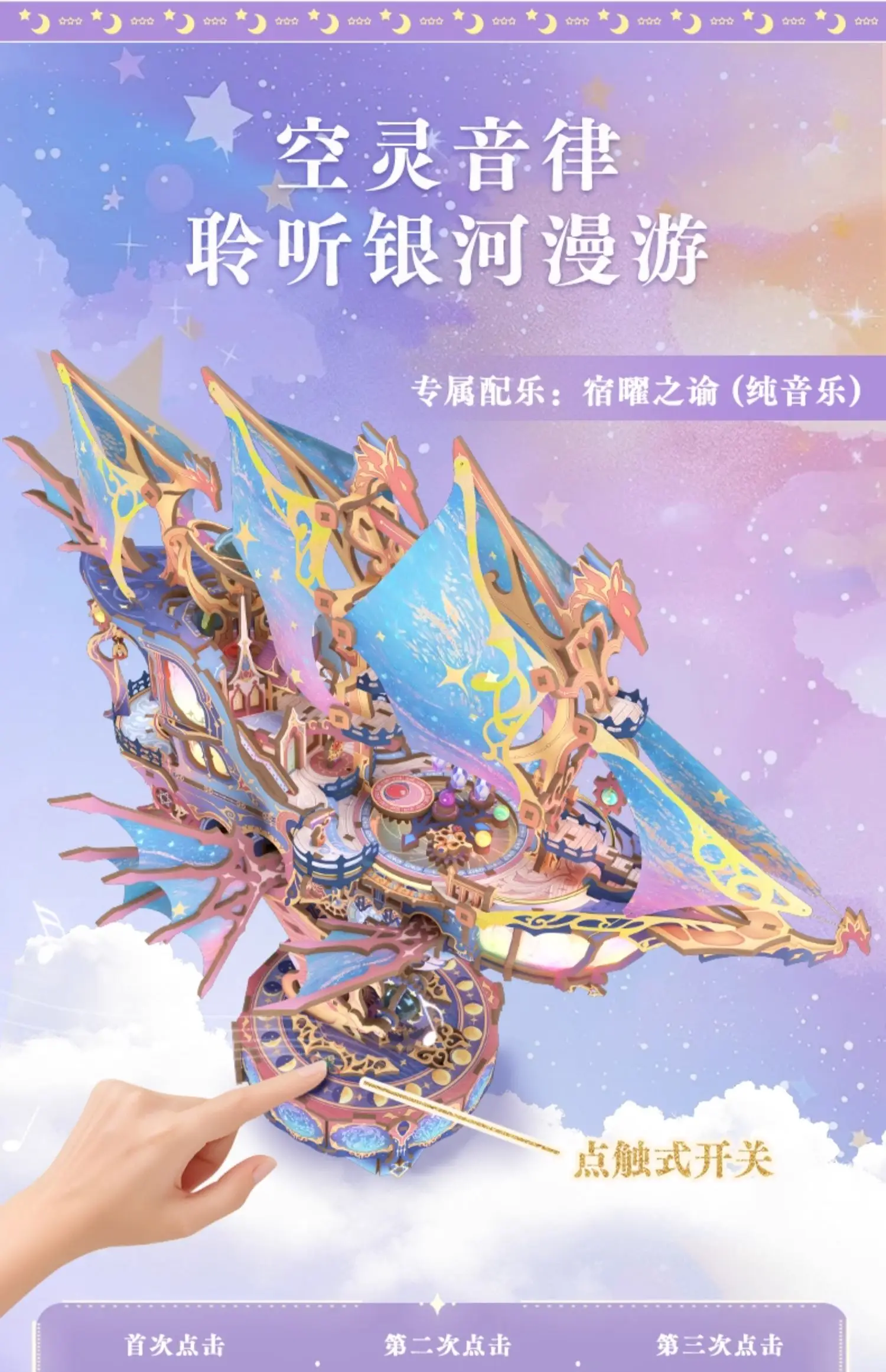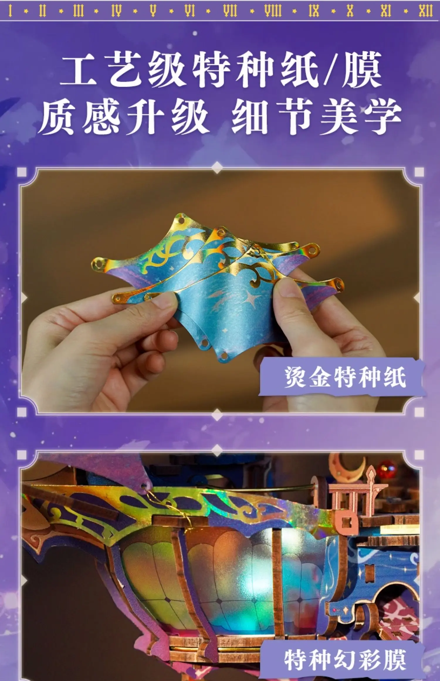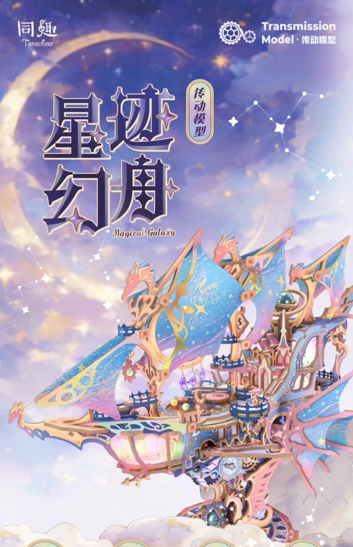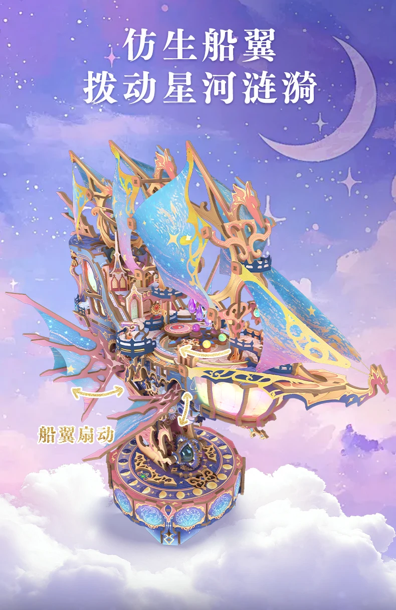 Tonecheer Fantasy Spaceship Boat Building Block Diorama Model Kit 3D Wooden Puzzle Wooden Birthday Gift Toy Dollhouse Decoration