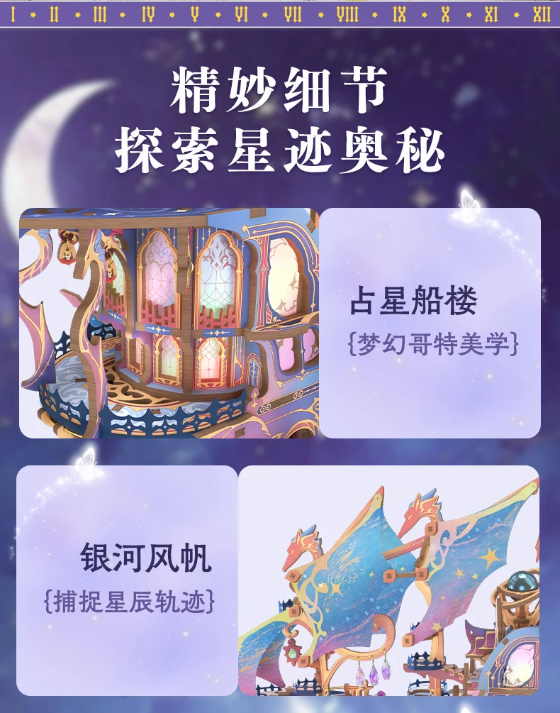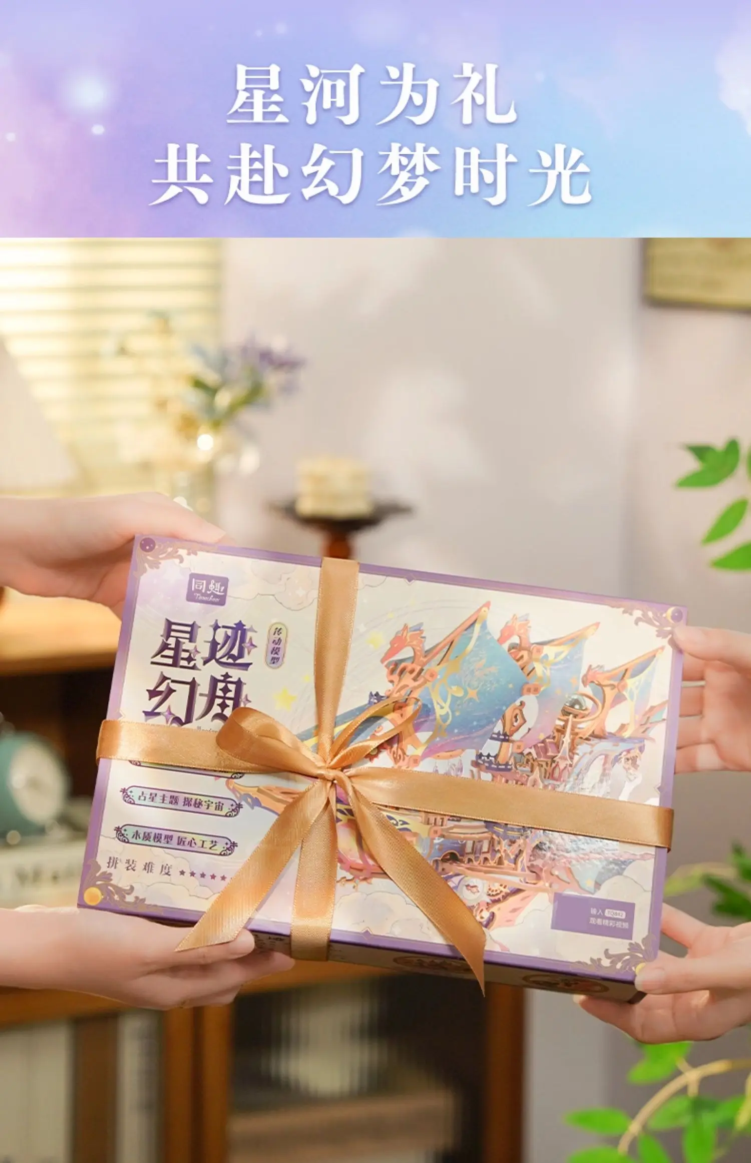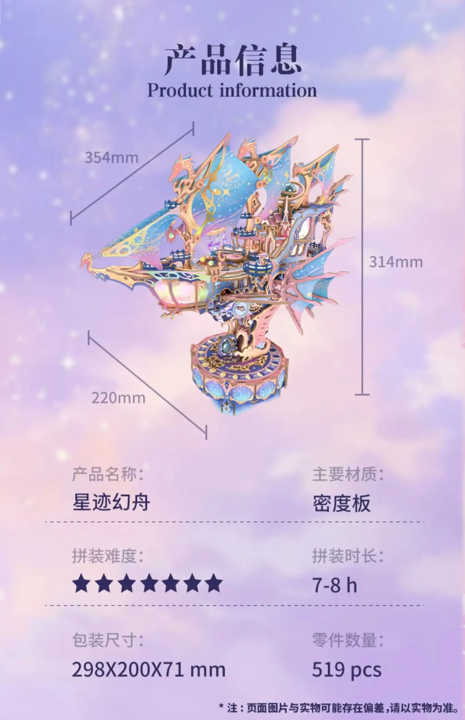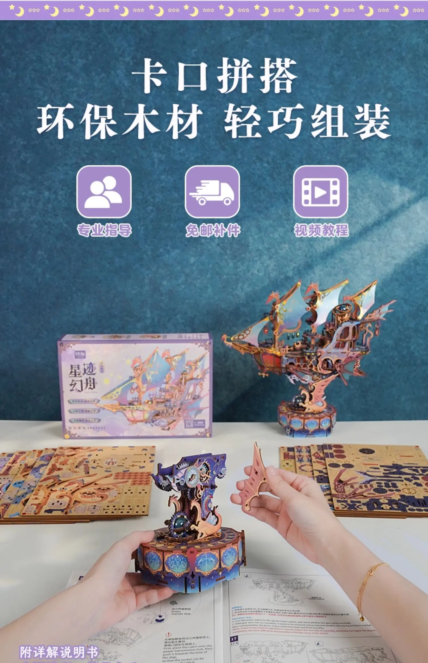 Tonecheer Fantasy Spaceship Boat Building Block Diorama Model Kit 3D Wooden Puzzle Wooden Birthday Gift Toy Dollhouse Decoration