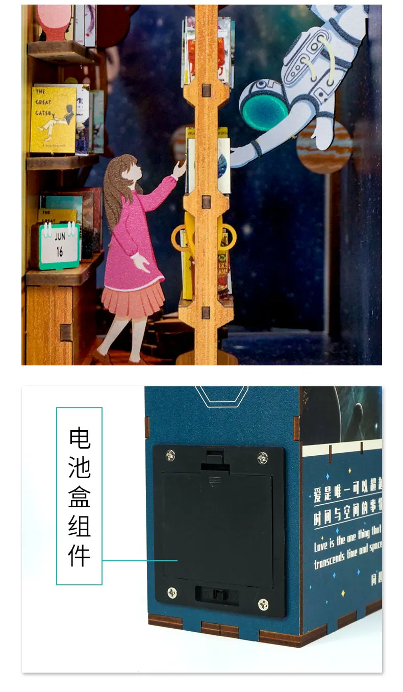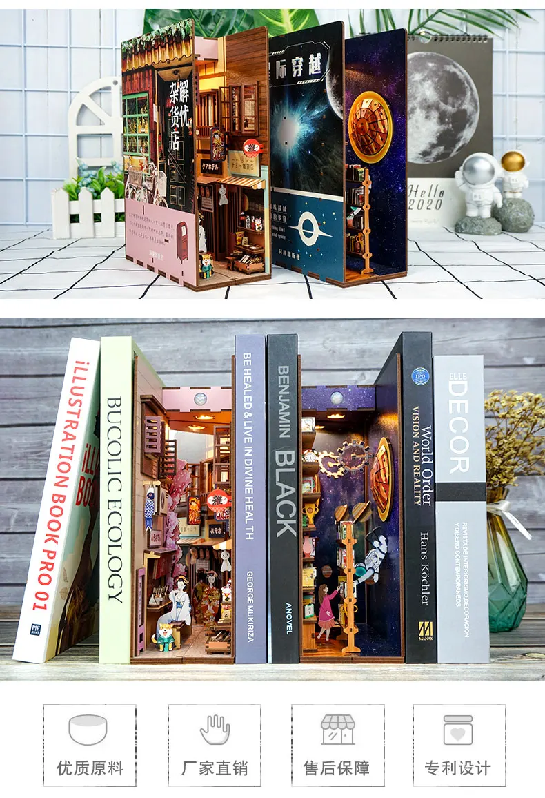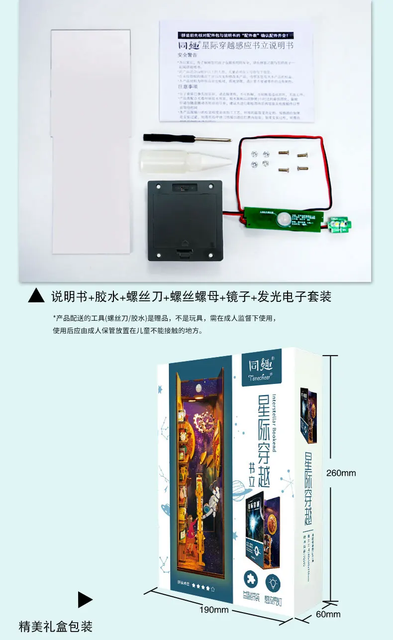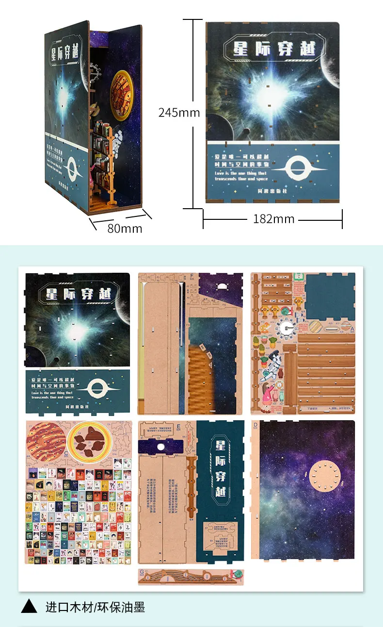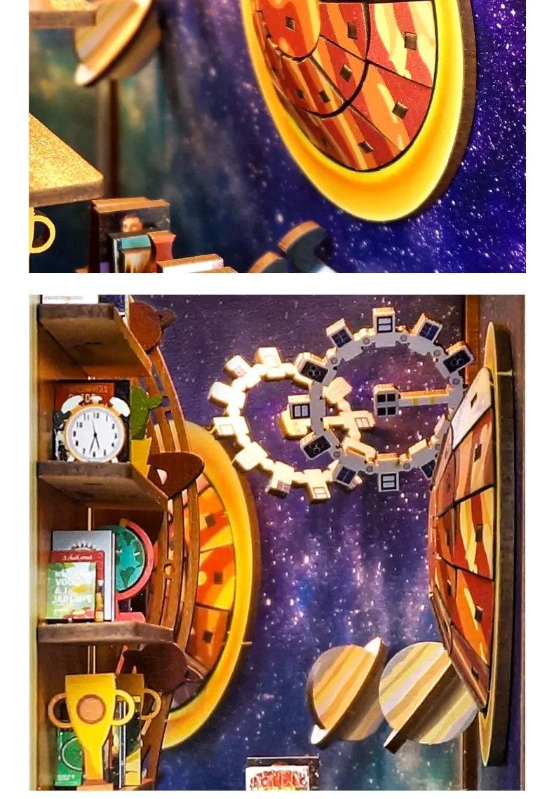 ACG Name:Tonecheer Interstellar Induction Book Nook Diorama Model Kit 3D Wooden Puzzle Wooden Bookend Dollhouse Decoration Birthday Gift