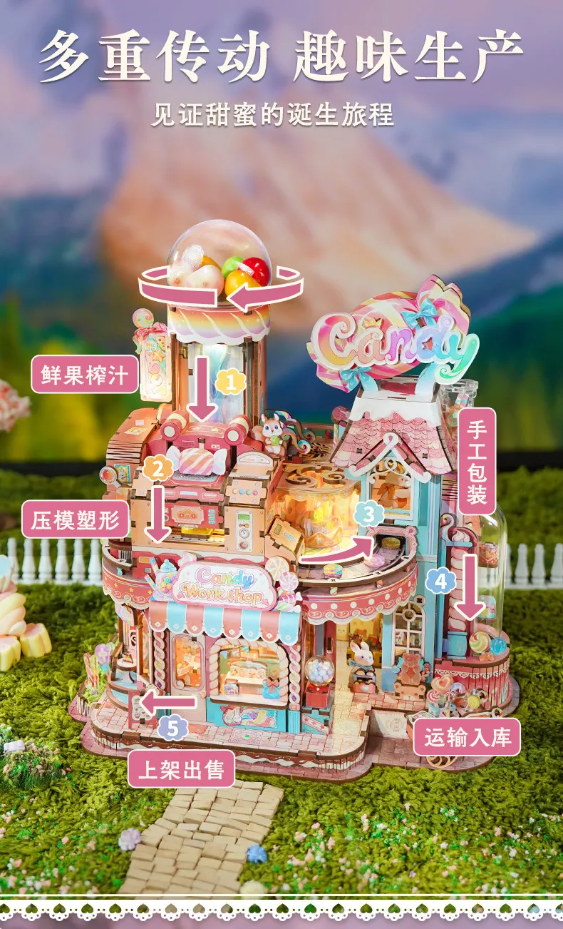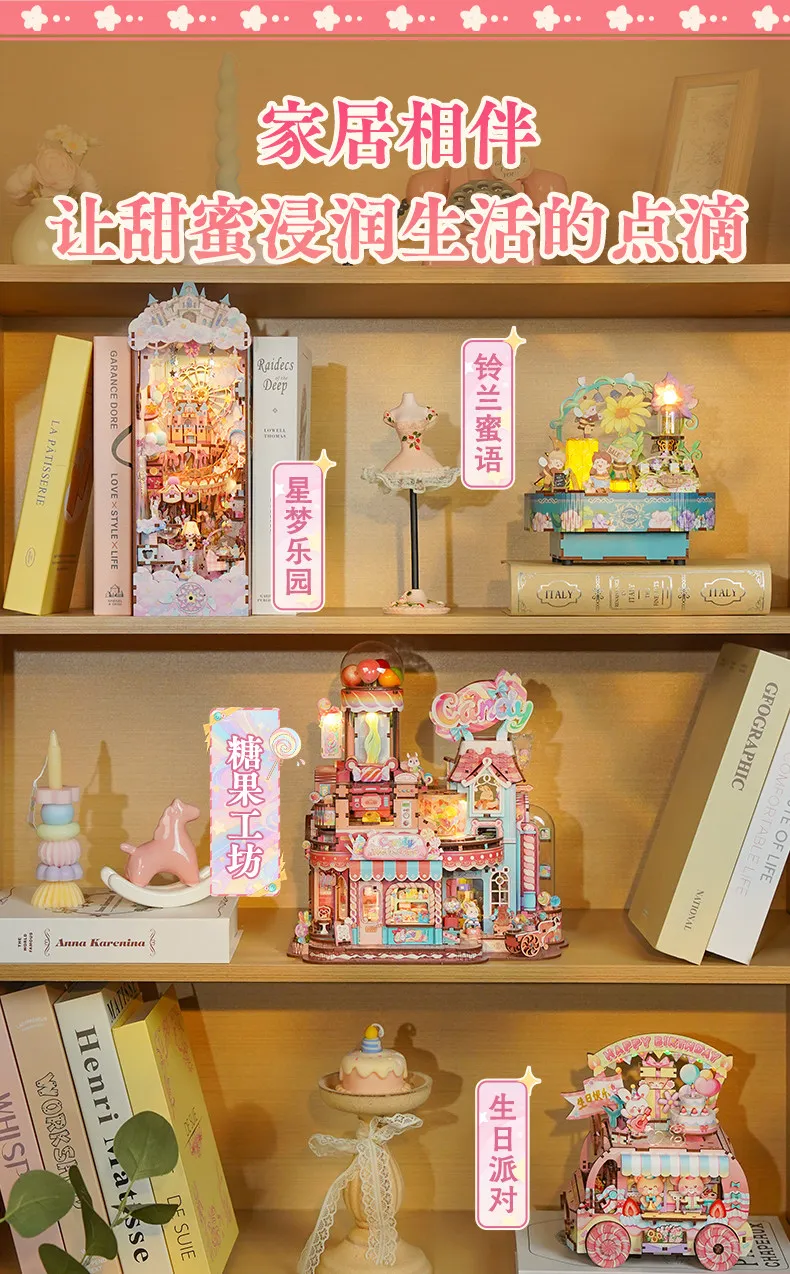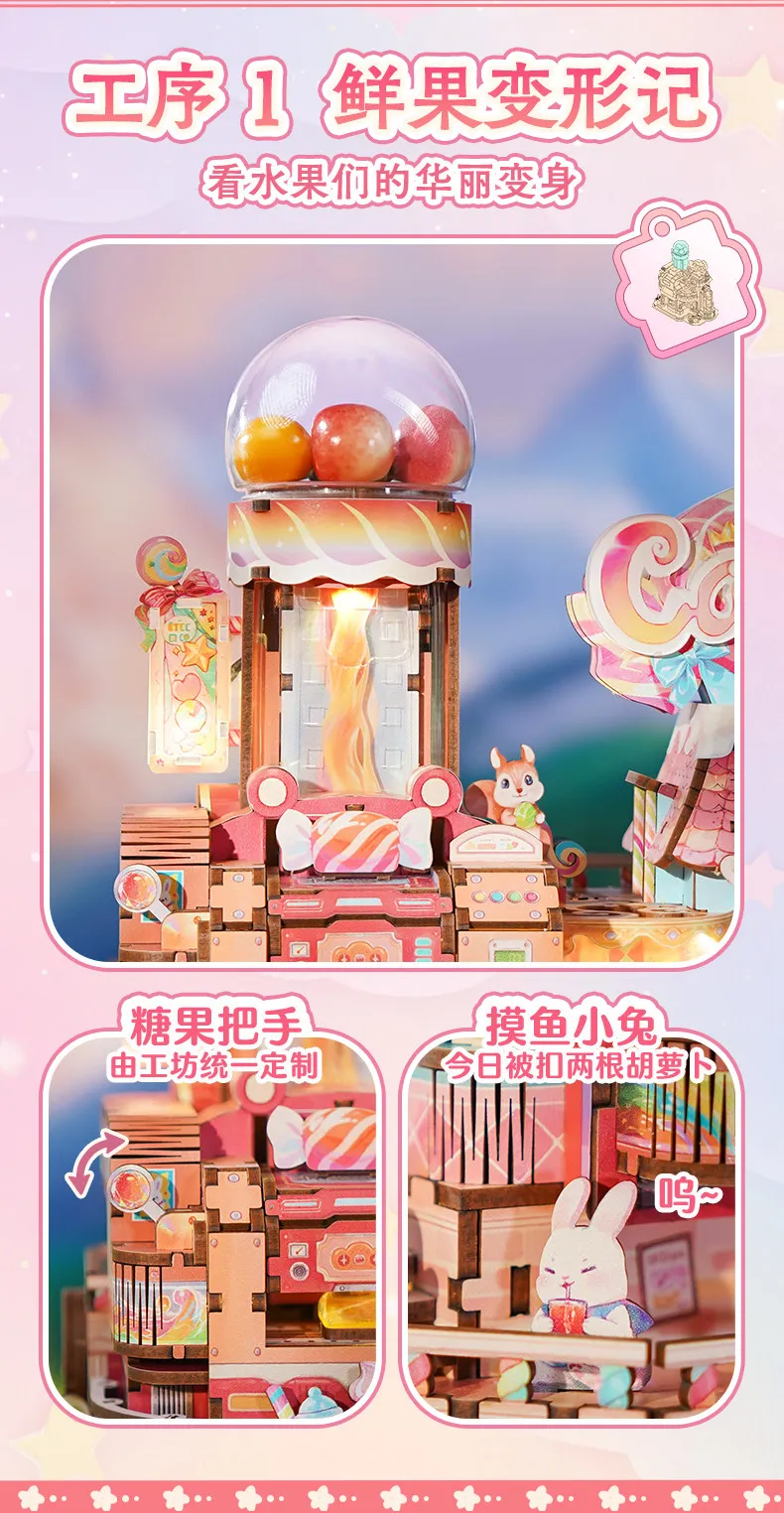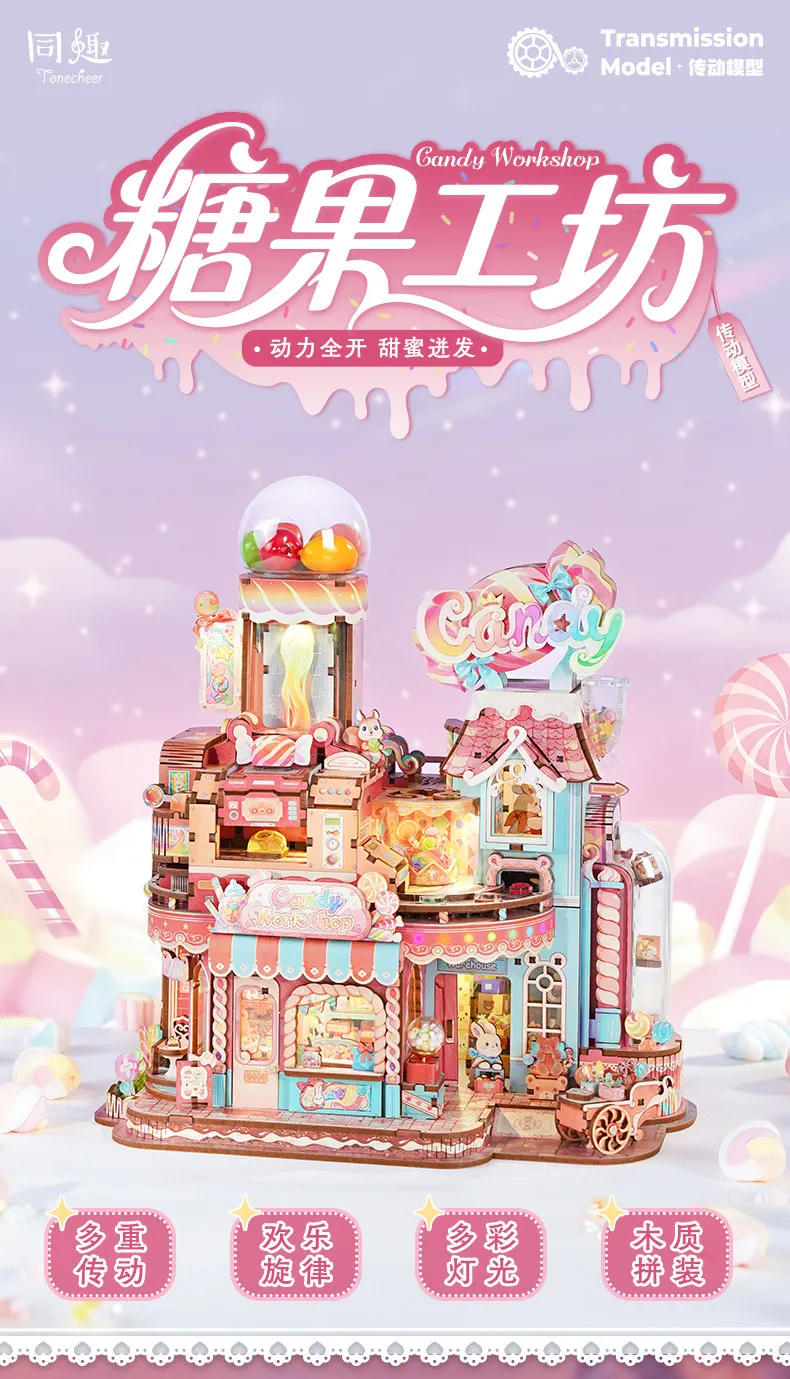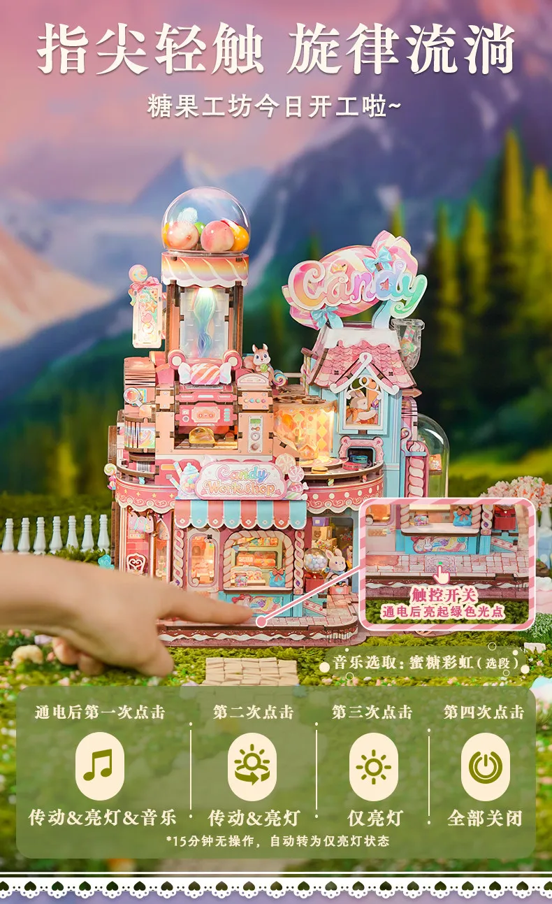 Tonecheer Sweet Wheel Music Box DIY Wooden Puzzle Dollhouse Diorama Transmission Model Kit 3D Wooden Decoration Birthday Gift