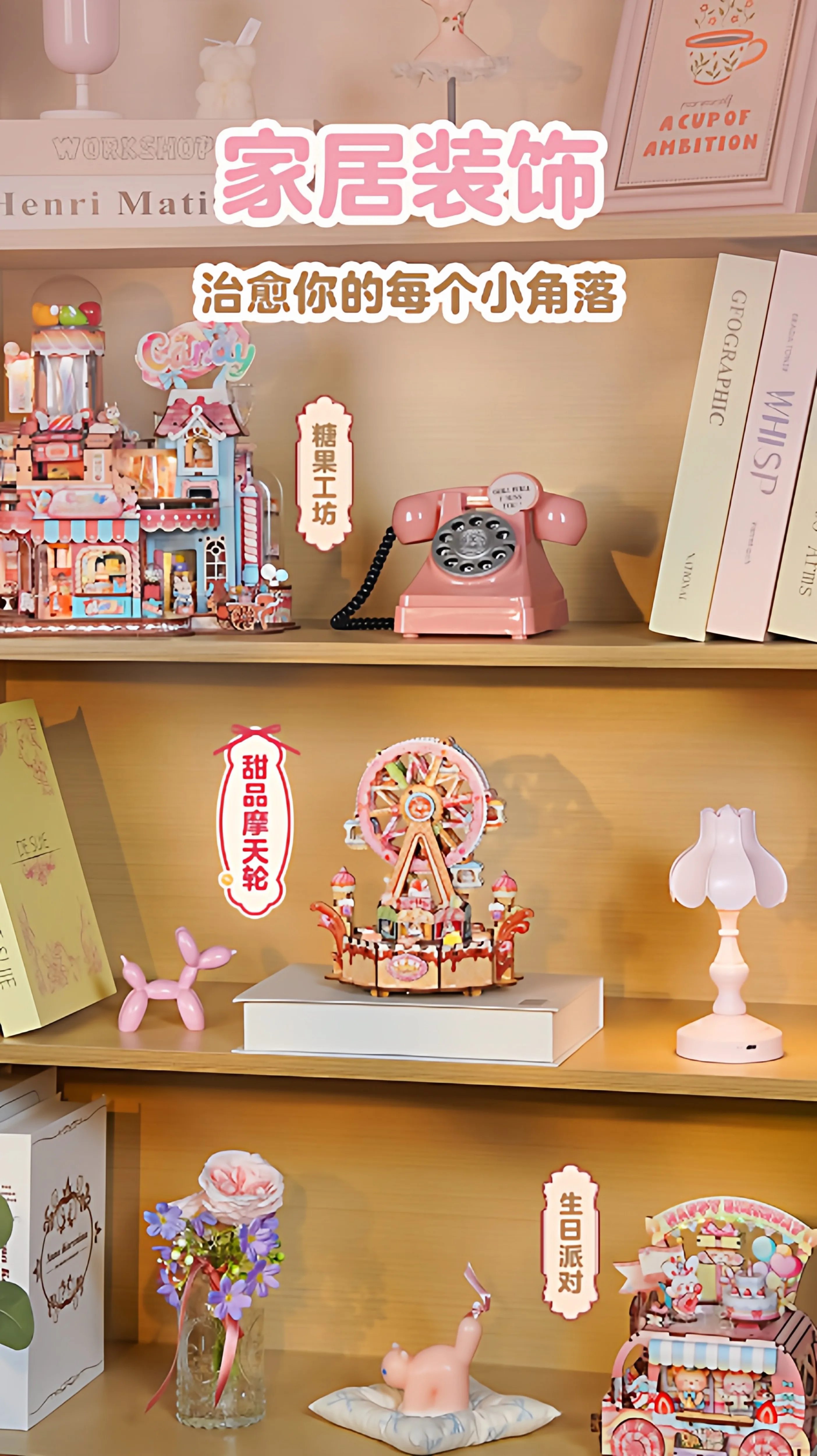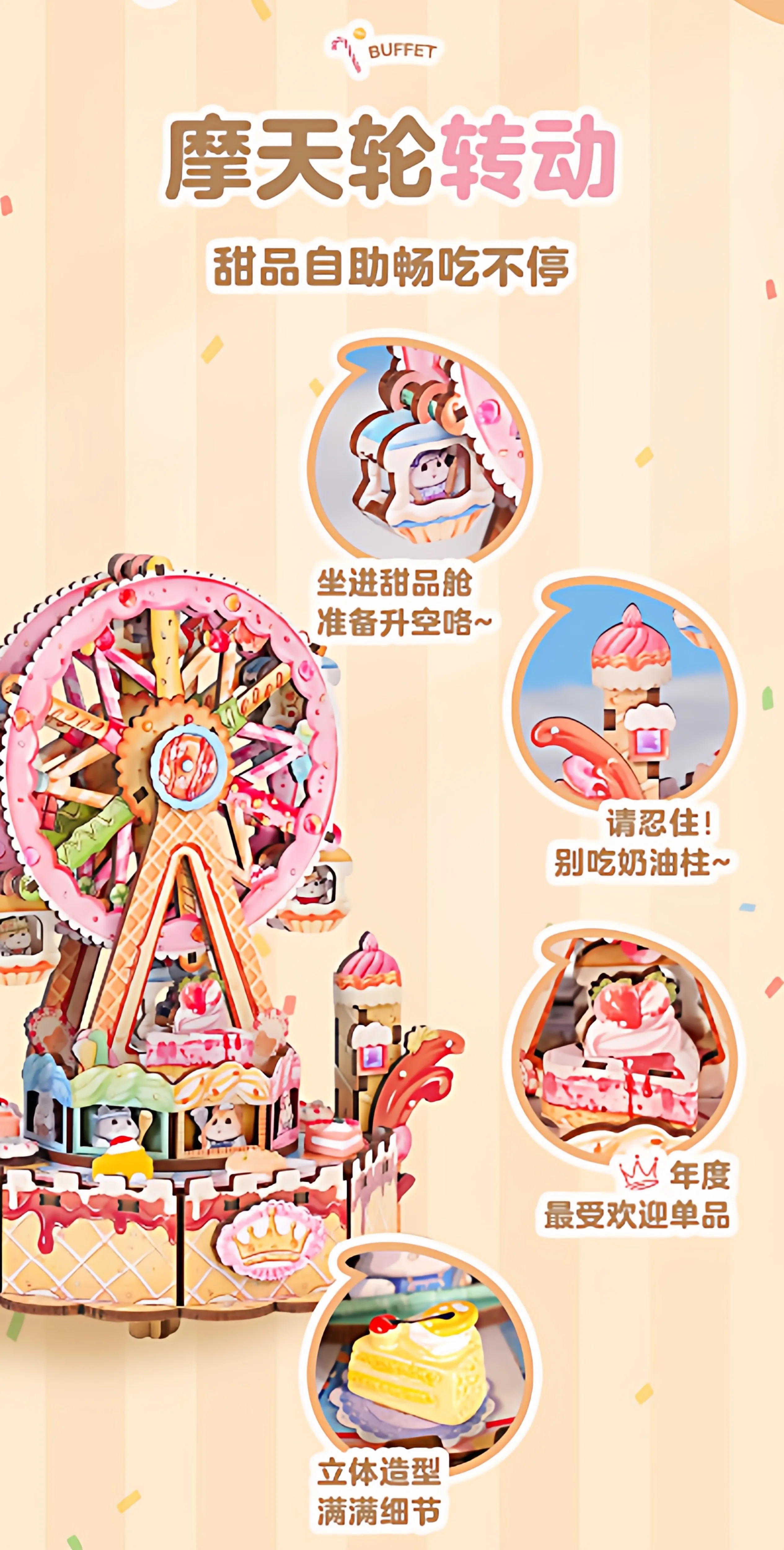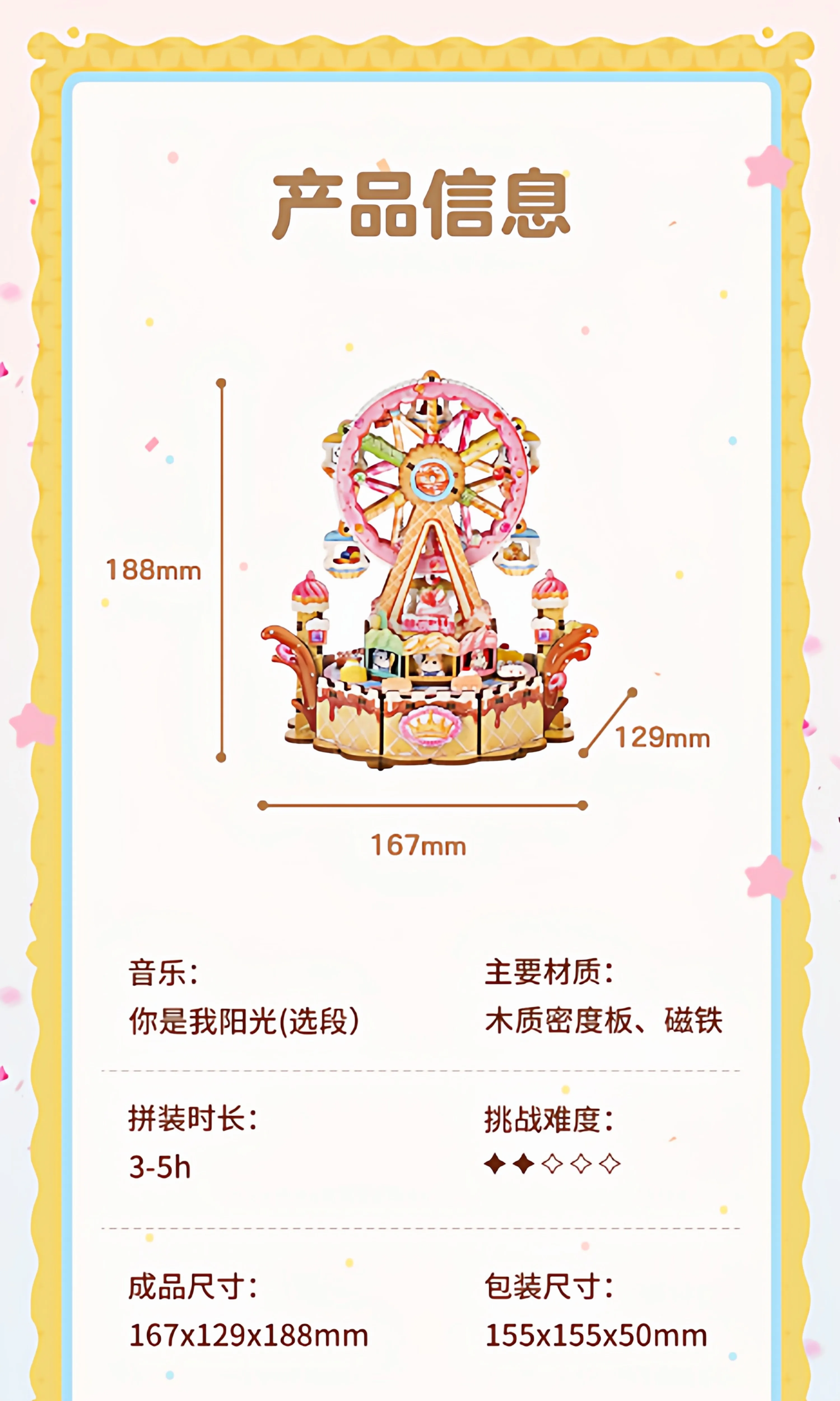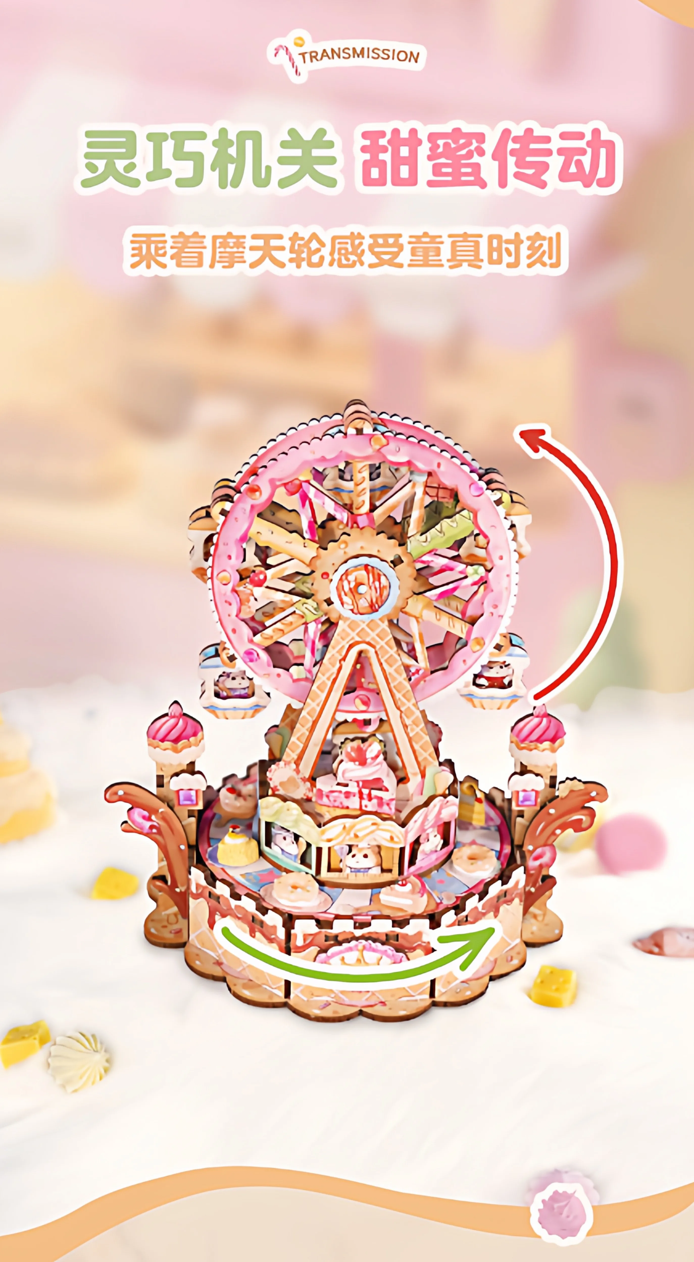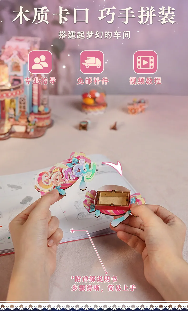 Tonecheer Sweet Wheel Music Box DIY Wooden Puzzle Dollhouse Diorama Transmission Model Kit 3D Wooden Decoration Birthday Gift