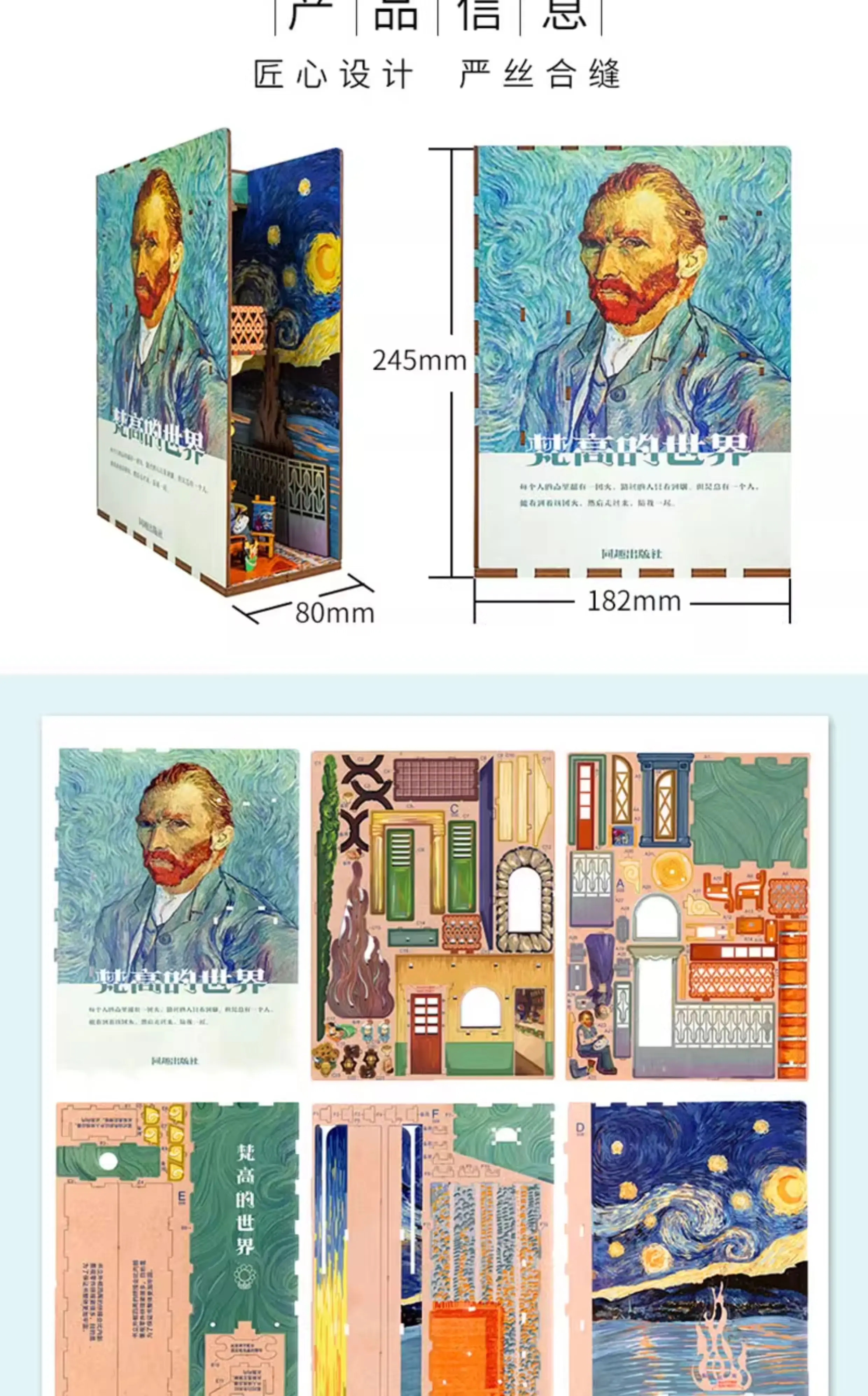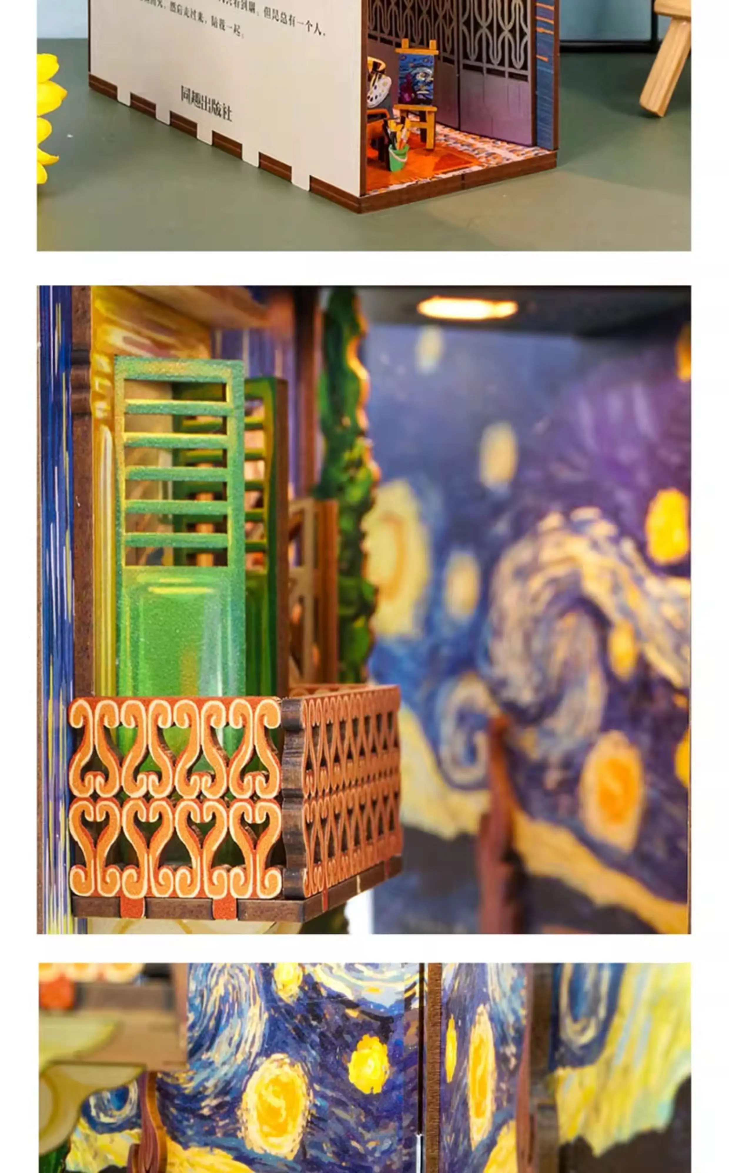 Tonecheer Vincent Willem Van Gogh DIY Book Nook Dollhouse Diorama Model Kit 3D Wooden Puzzle Wooden Bookend Decoration Toys Gift